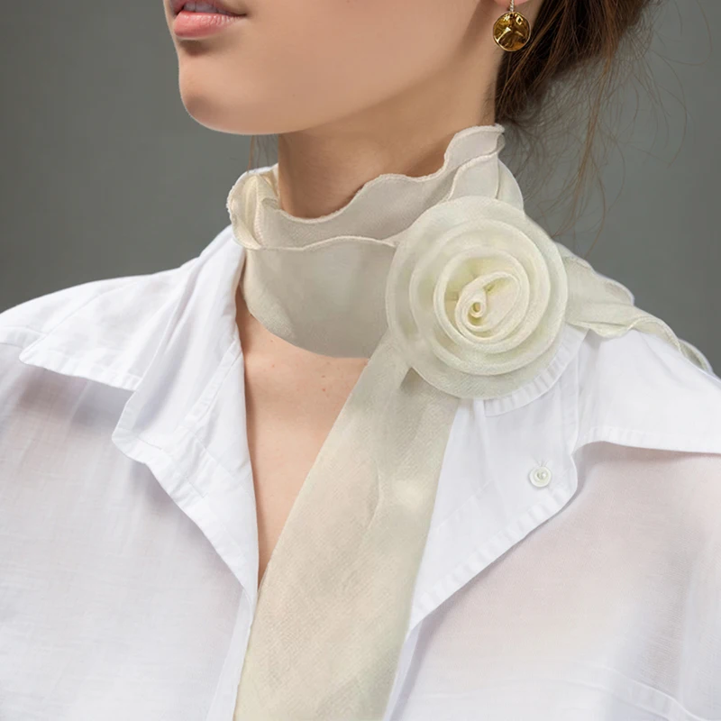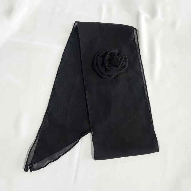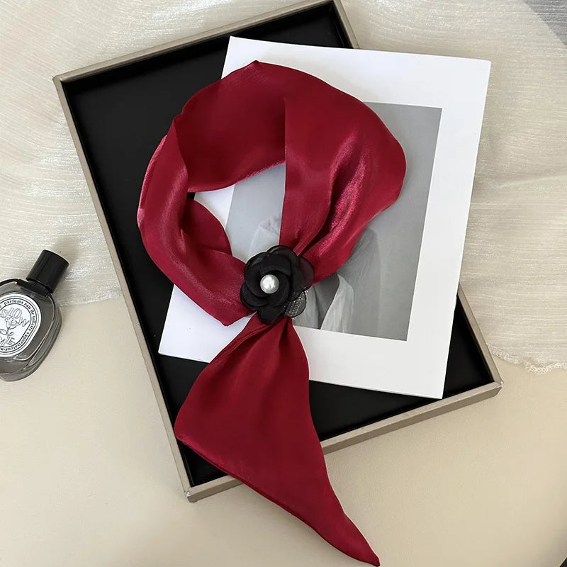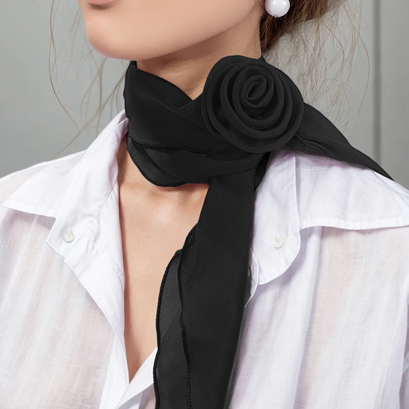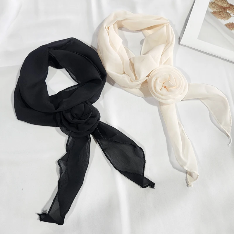 Luxury Long Chiffon Scarf Female Print Rose Thin Narrow Scarf Floral Satin Hair Band Bag Ribbon Scarfs Women Small Neckerchief