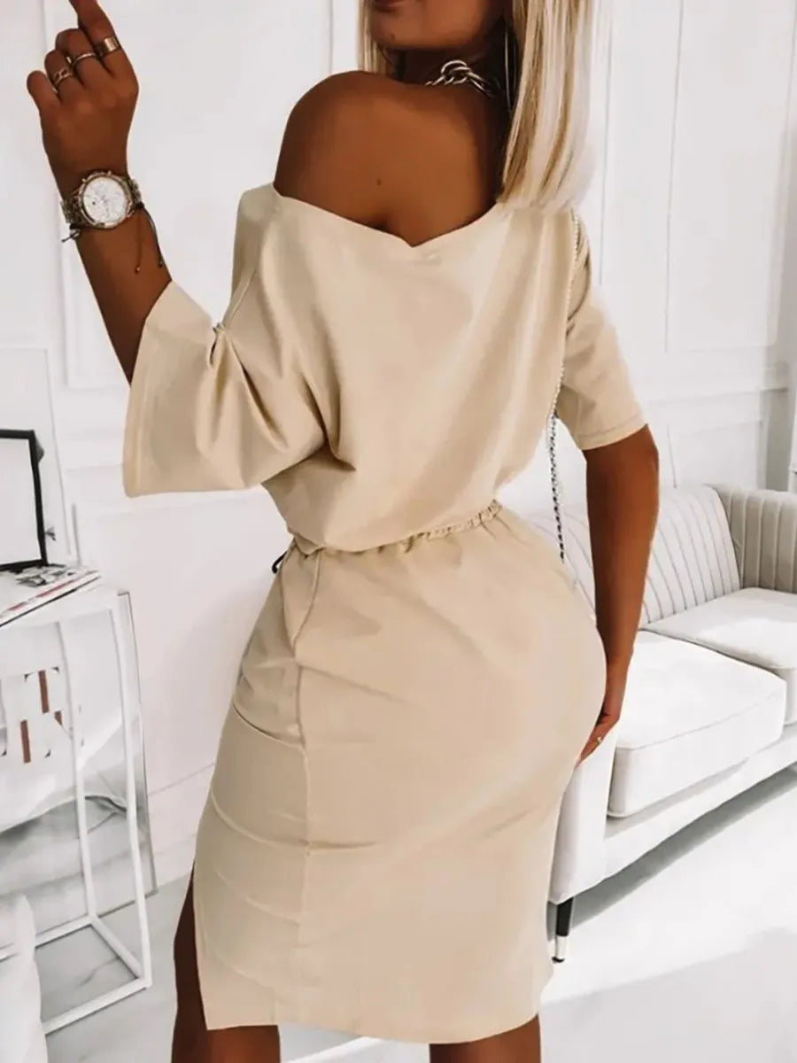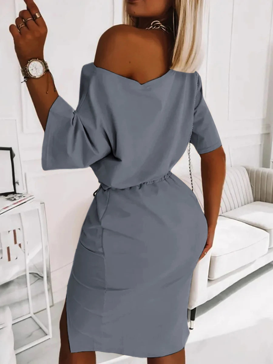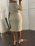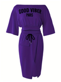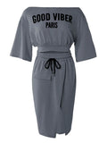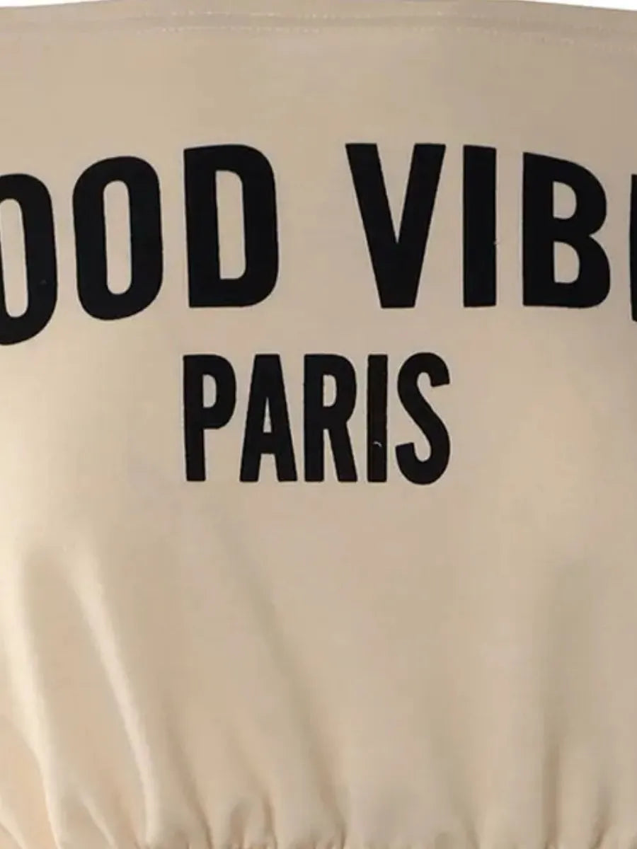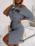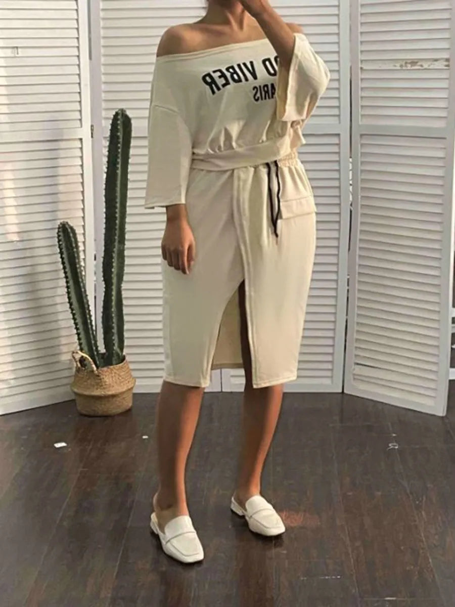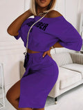 LW Plus Size Two Piece Good Viber One Shoulder Letter Print Set Crop Top+High Split Skirt Elegant Matching Outfits For Women