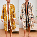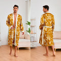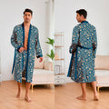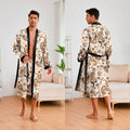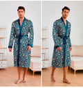 Men 2 Pieces Sleepwear Leopard Bathrobe Set Satin Kimono Peignoir Homme Long Mens Sexy Sleepwear Loungewear Home Dressing Gown