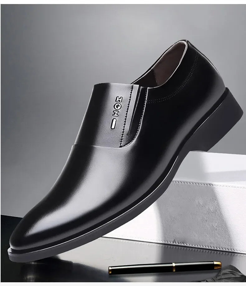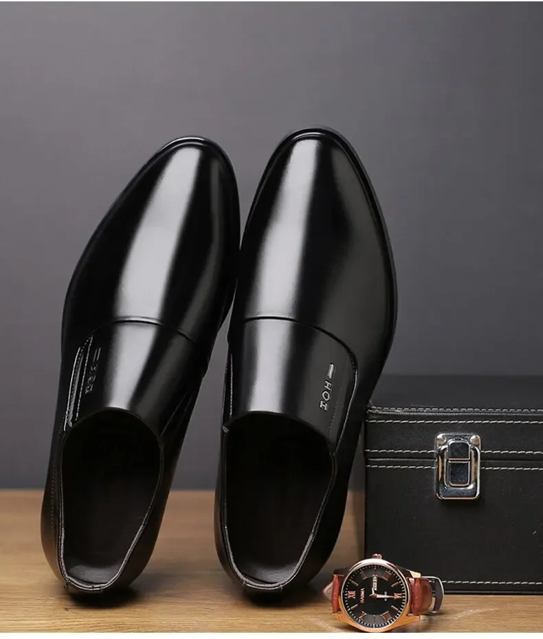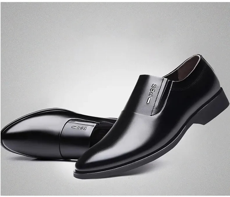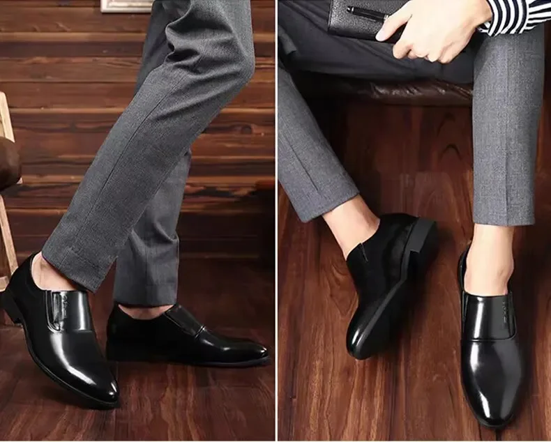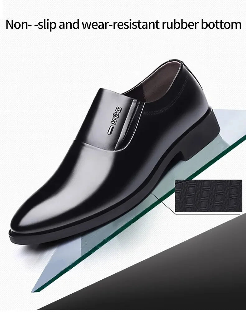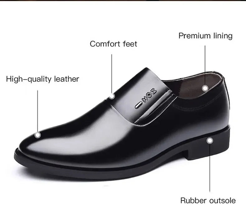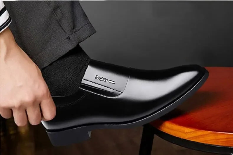 Men Business Dress Leather Shoes Spring Autumn Leisure PU Leather Breathable Soft Sole Invisible Elevated Anti Slip Casual