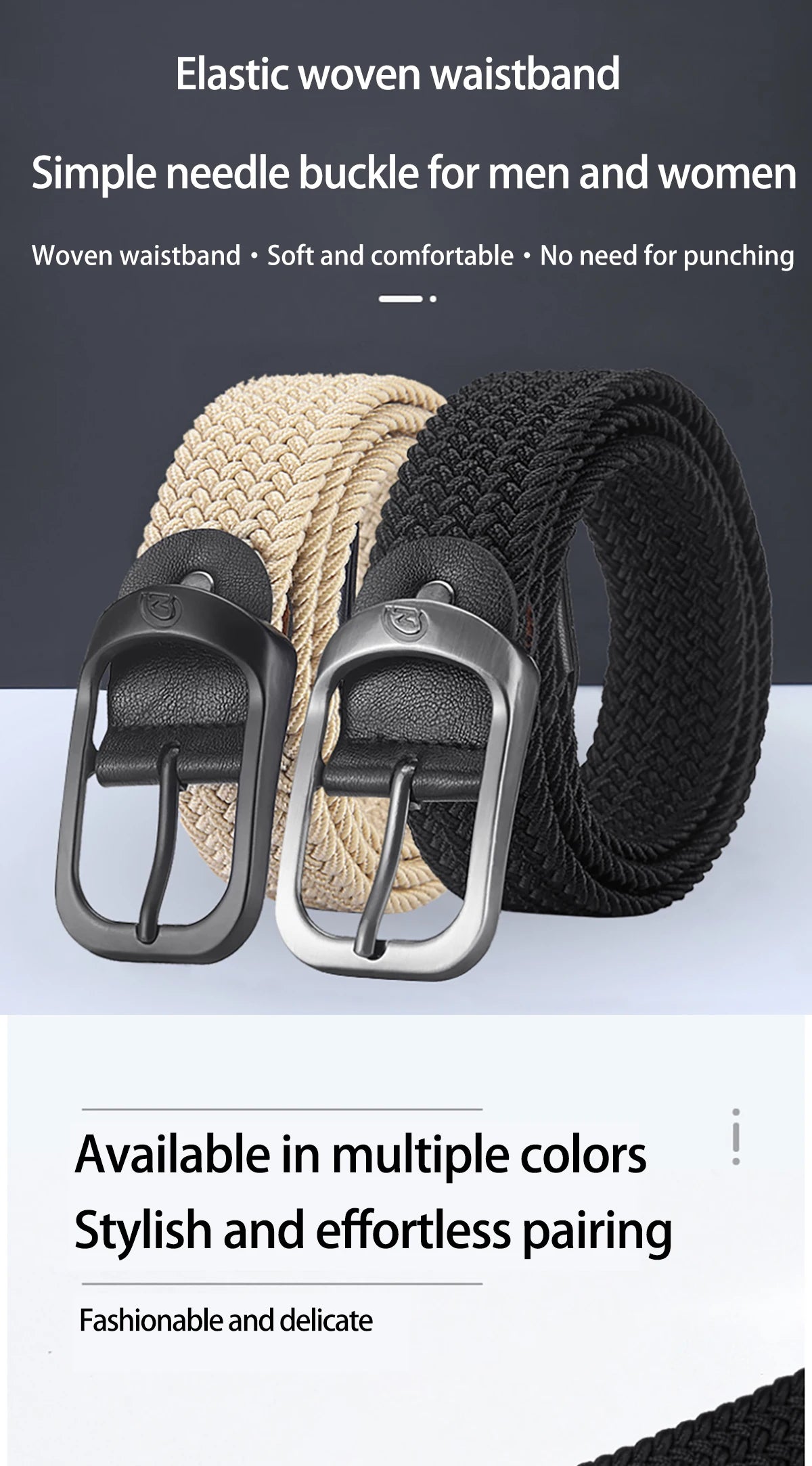 Men's Belt Casual Woven Elastic Belt Outdoor Sports Women's Belt Climbing Work Belt Jeans Suit Pants Men's And Women's Universal