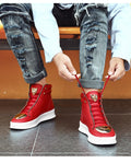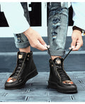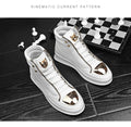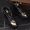 Men's Boots 2024 Autumn High Top Skateboard Shoes Metal Decoration Casual Leather Boots Korean Version Trendy Street Dance Shoes