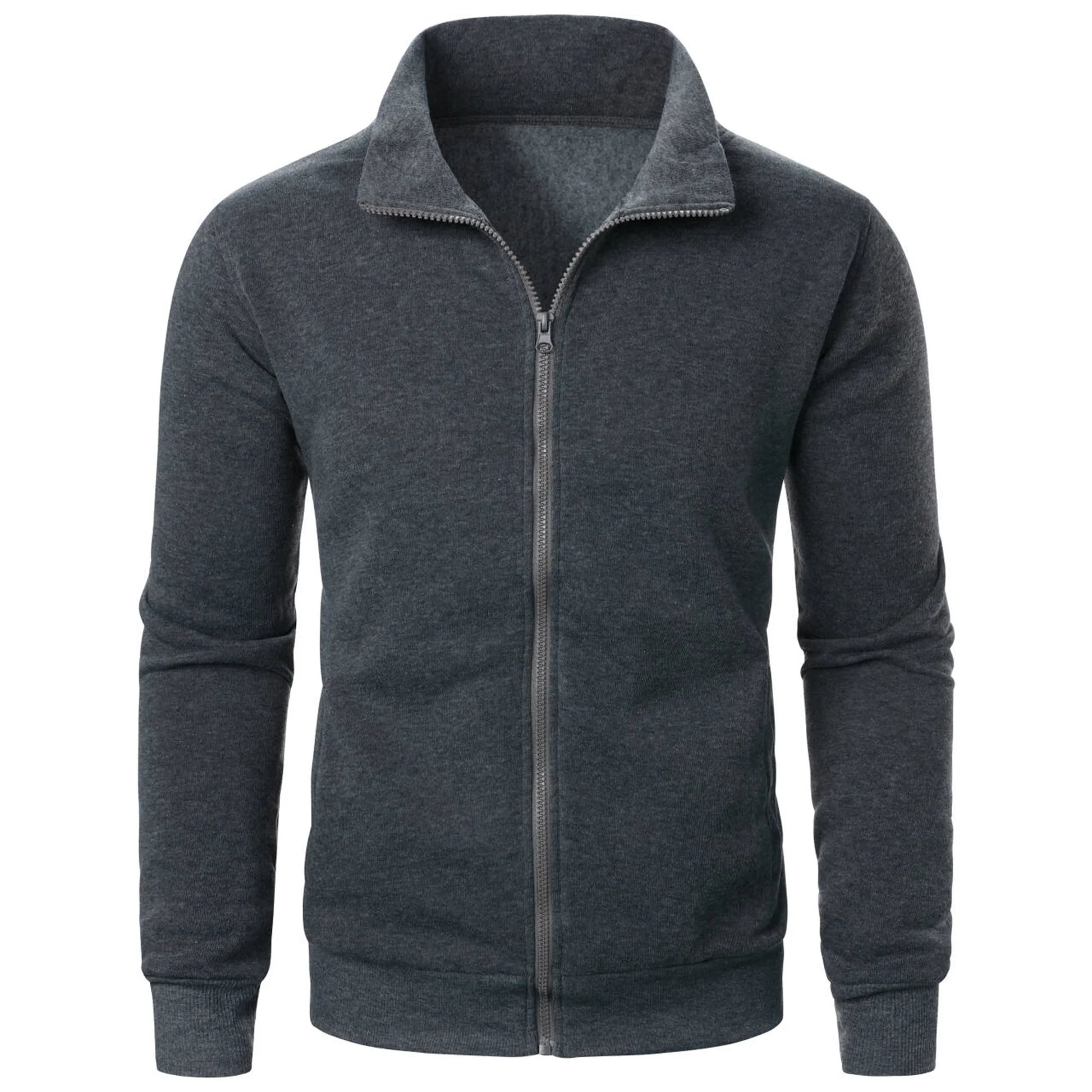 Men's casual sports zipper stand collar hoodie coat men's solid color cardigan