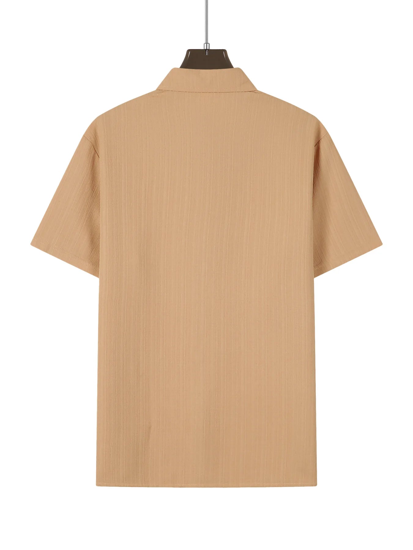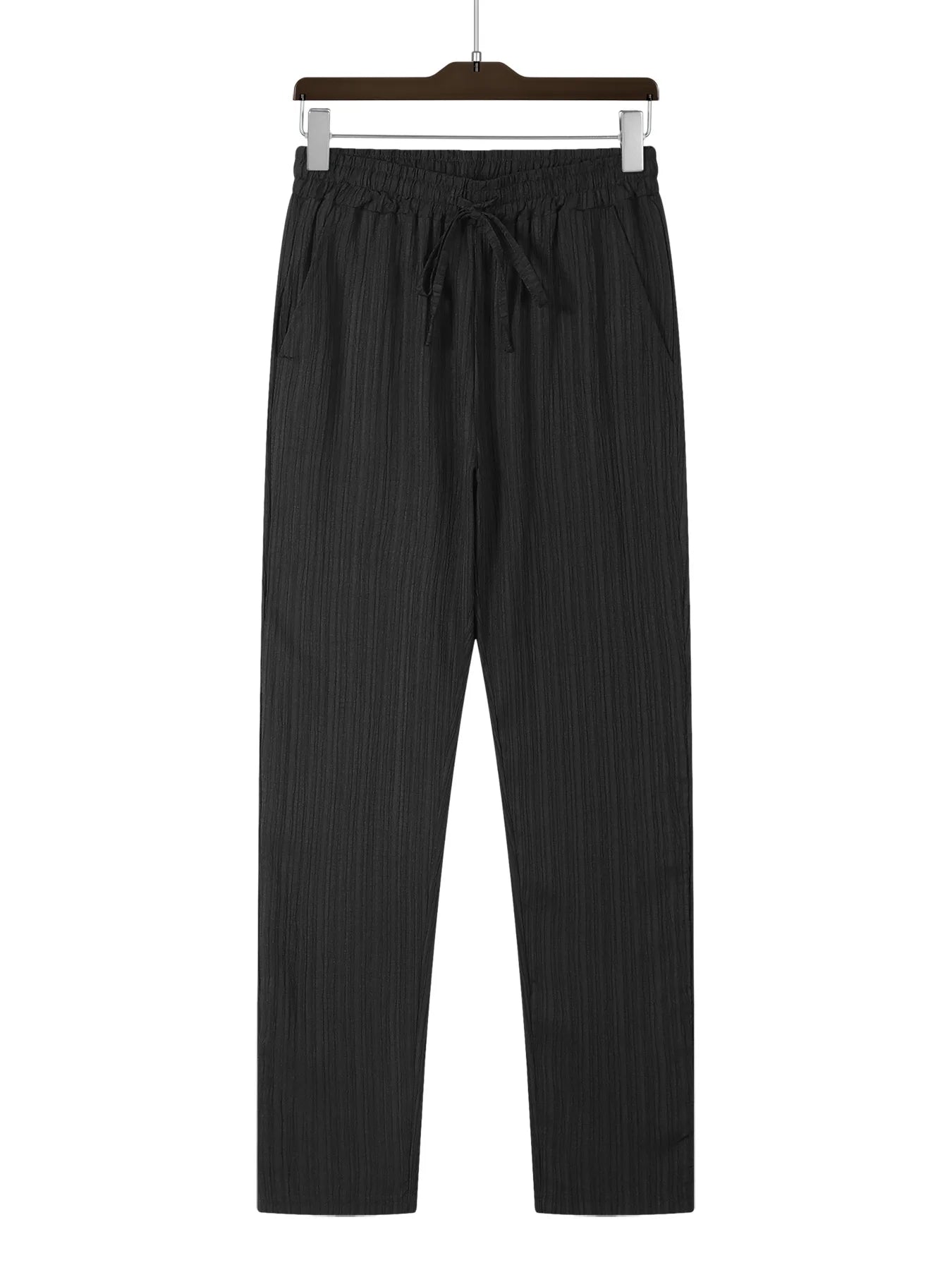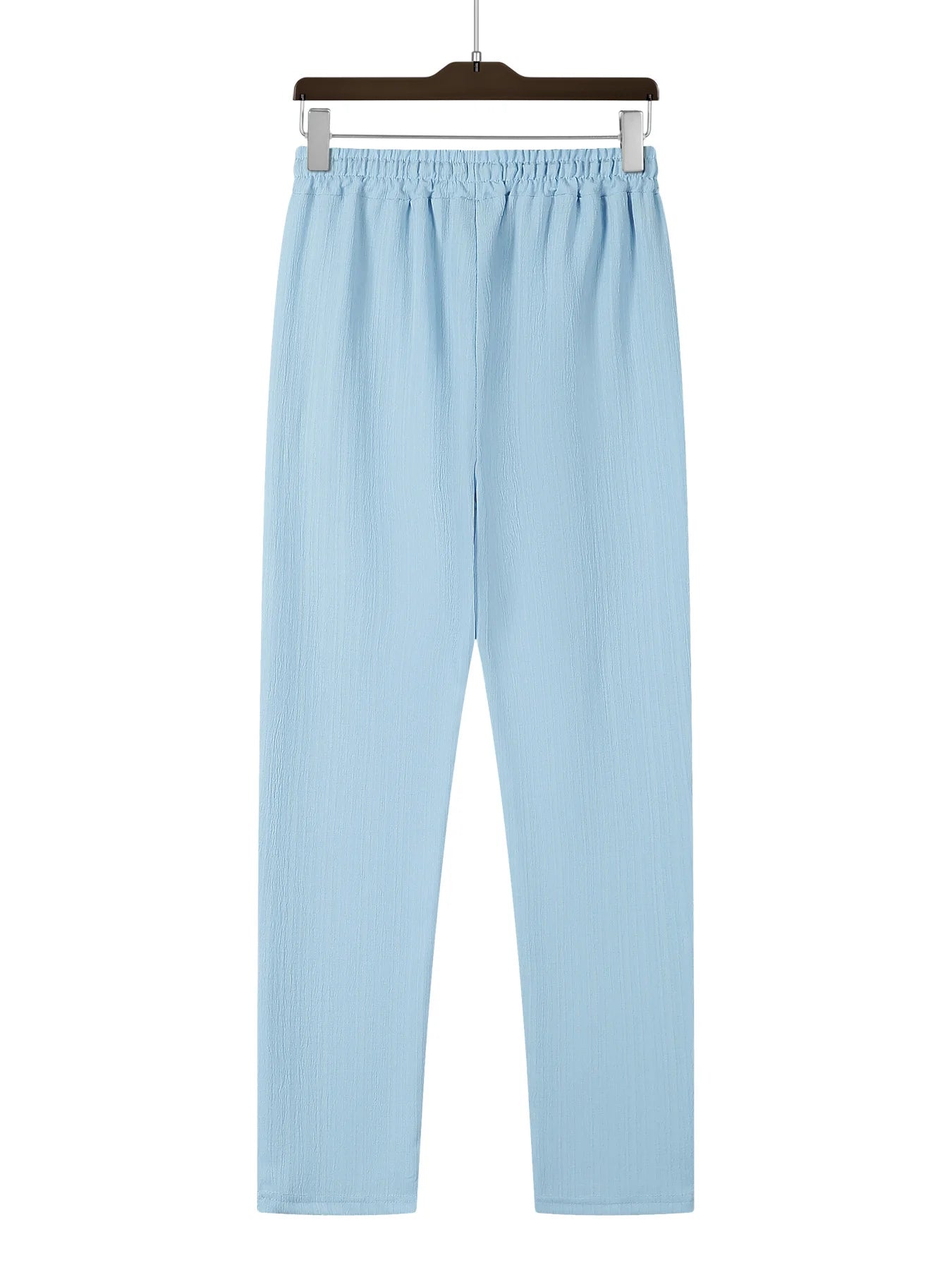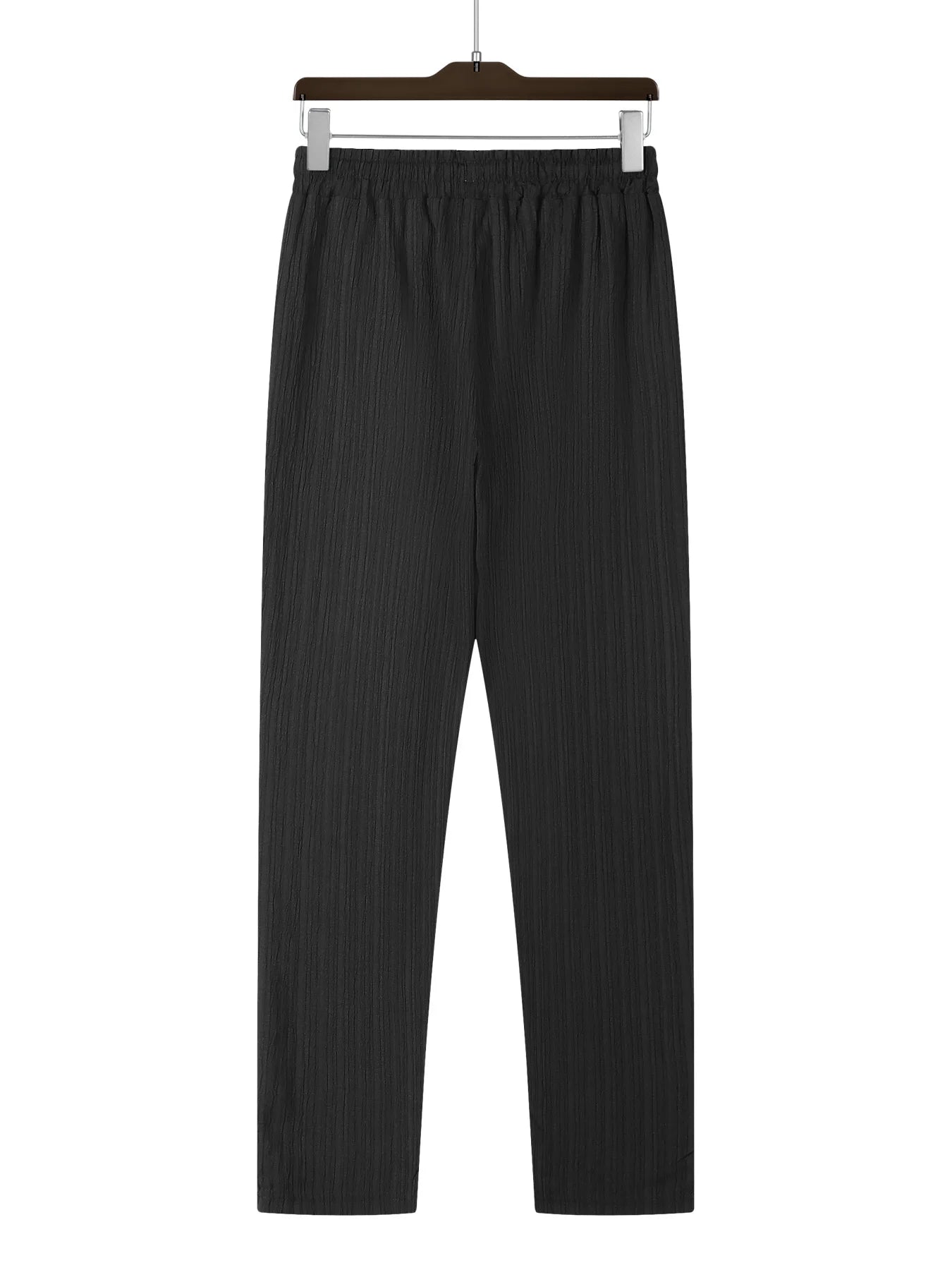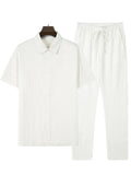 Mens Casual Stripe Two Piece Sets Solid Color Lapel Short Sleeve Tops And Long Pants Suits Spring Summer Sports Streetwear Cloth