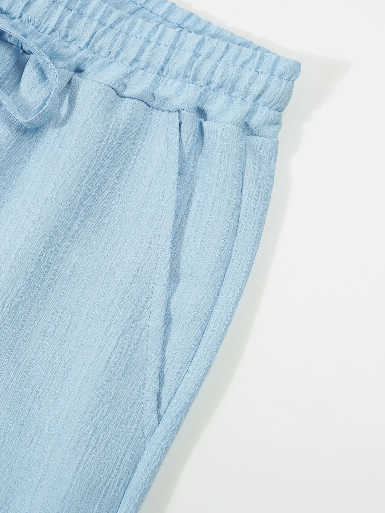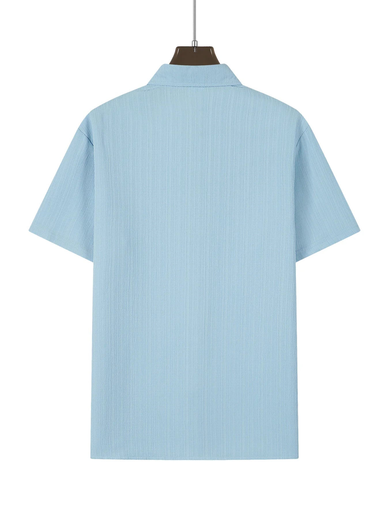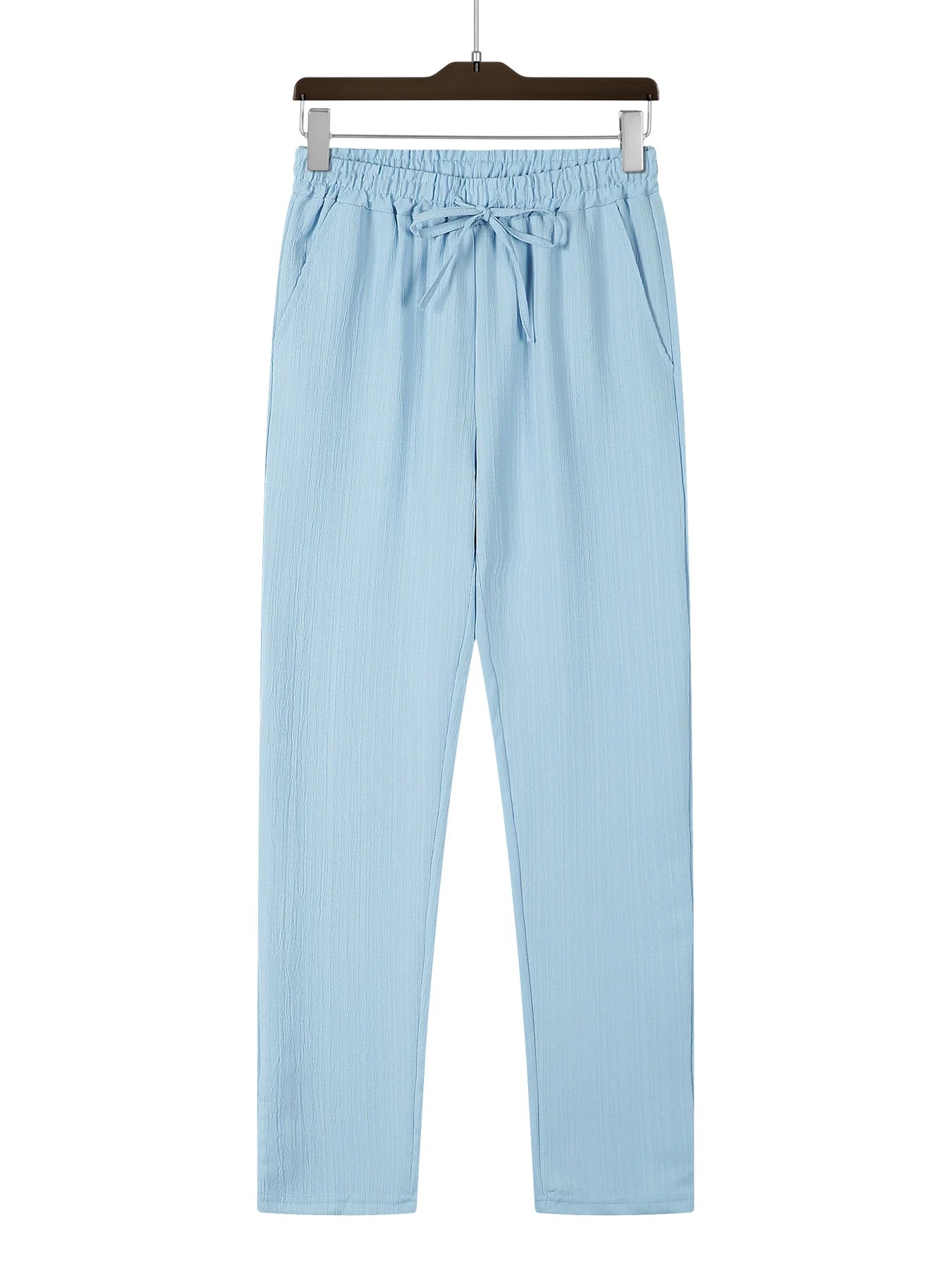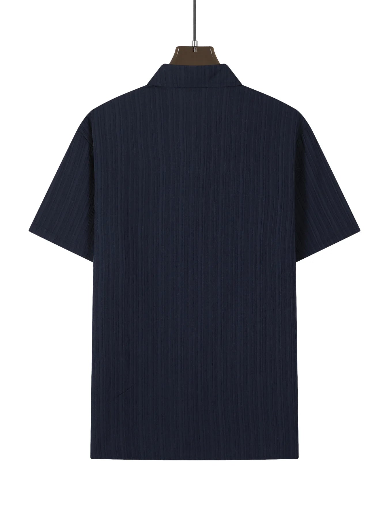 Mens Casual Stripe Two Piece Sets Solid Color Lapel Short Sleeve Tops And Long Pants Suits Spring Summer Sports Streetwear Cloth