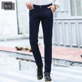 Men's Elastic Straight Pants Business Casual Long Suit Pants Male Formal Trousers Solid Colors Black BLue