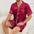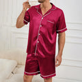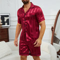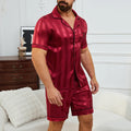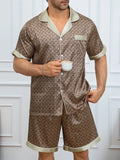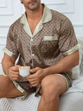 Men's Plaid Print Pajama Set Short Sleeve Lapel Top And Elastic Shorts Comfortable Perfect For Summer Sleepwear Loungewear Pjs