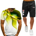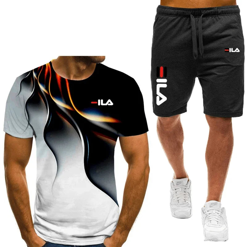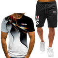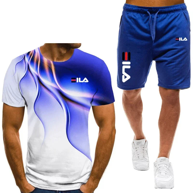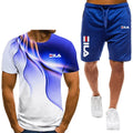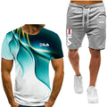 Men's T-shirt and shorts set, running fashion printed short sleeved sports T-shirt, summer 2024