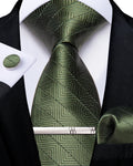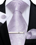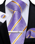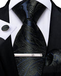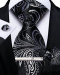 Men's Tie Set with Clip Luxury Retro Striped Floral 8cm Necktie Handkerchief Cufflinks Wedding Party Business Accessories Gift
