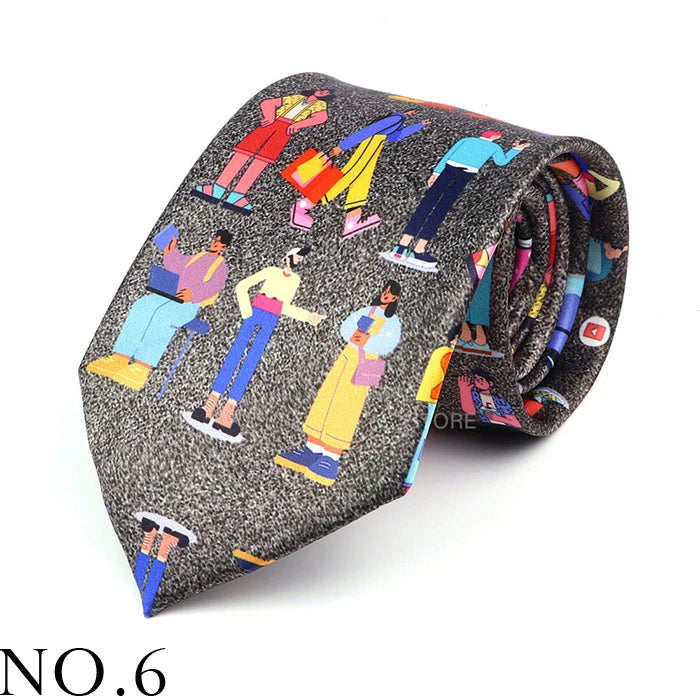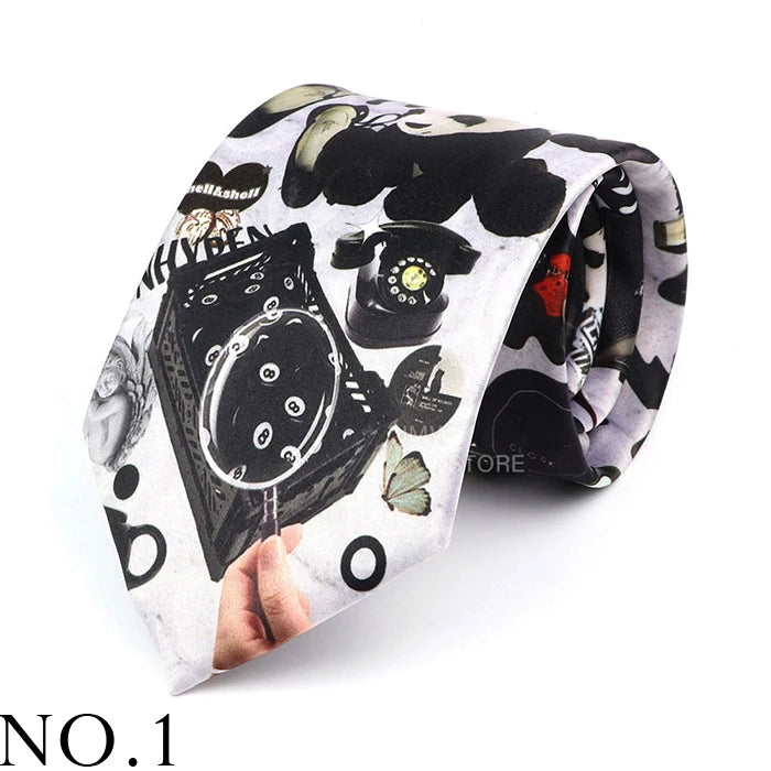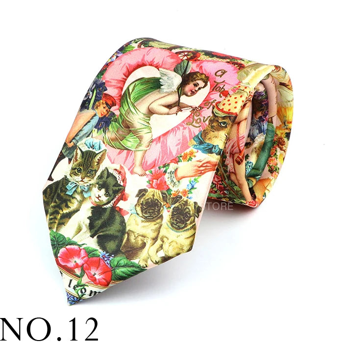 Men's Vintage Imitation Silk Ties 8.5cm Graffiti Painting Floral Necktie For Men Wedding Business Soft Printing Tie Wed Gift