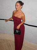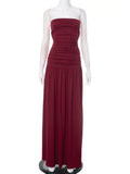 Mozision Off-shoulder Strapless Pleated Sexy Maxi Dress Women Fashion Backless Sleeveless High Waist Ruched Long Dress Elegant