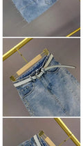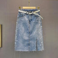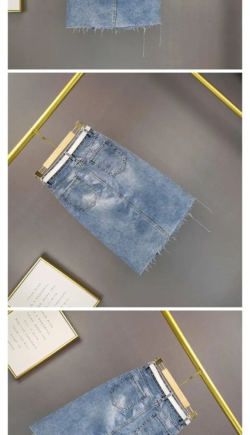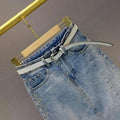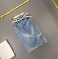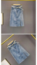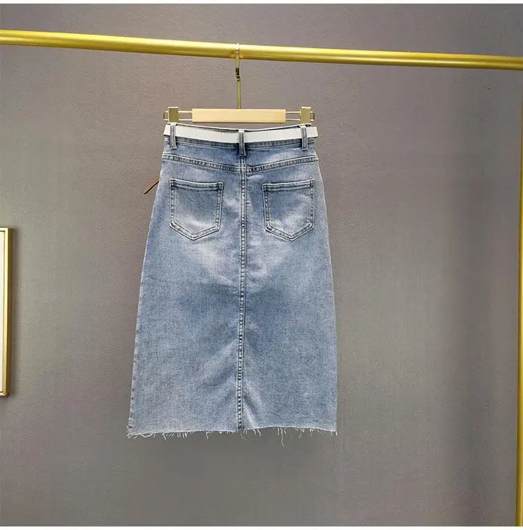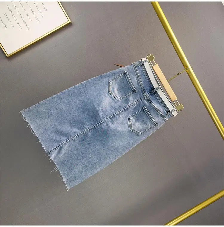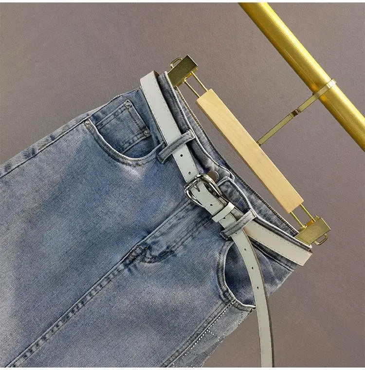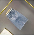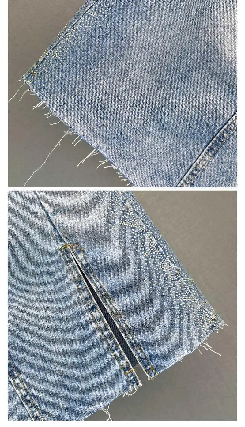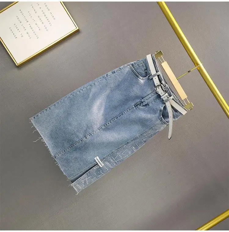 New Diamond inlay Split Vintage Casual Denim Skirt Female 2024 Summer Trend Fashion High Waist Slim Wrap Hip Half Skirt Women's