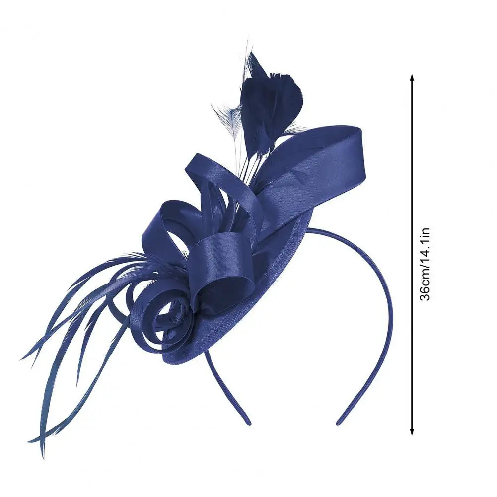 Hair Hoop Fascinator Hat with Hair Clip Elastic Band Faux Feather Ribbon Decor Satin Fabric Women Headband Party Accessories