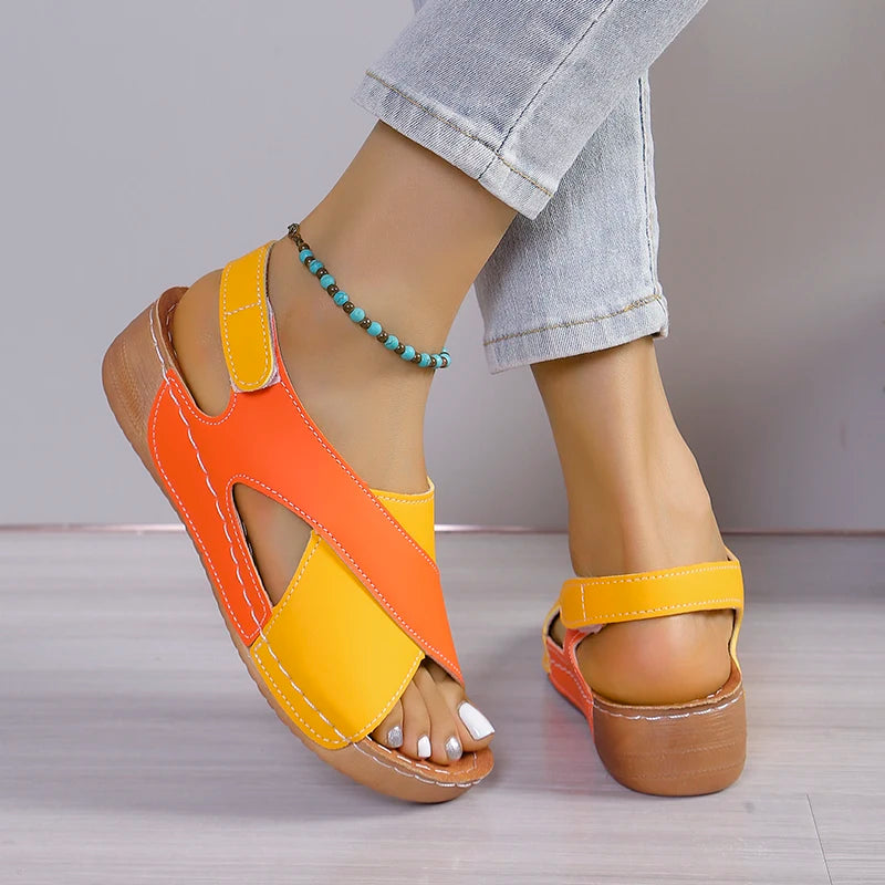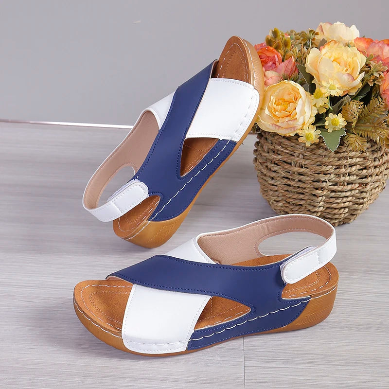 New Women's Contrast Color Wedge Sandals Summer Peep Toe Non Slip Beach Shoes Woman Comfortable Platform Roman Sandalias Mujer