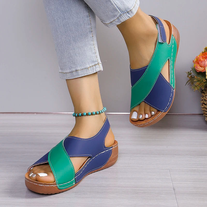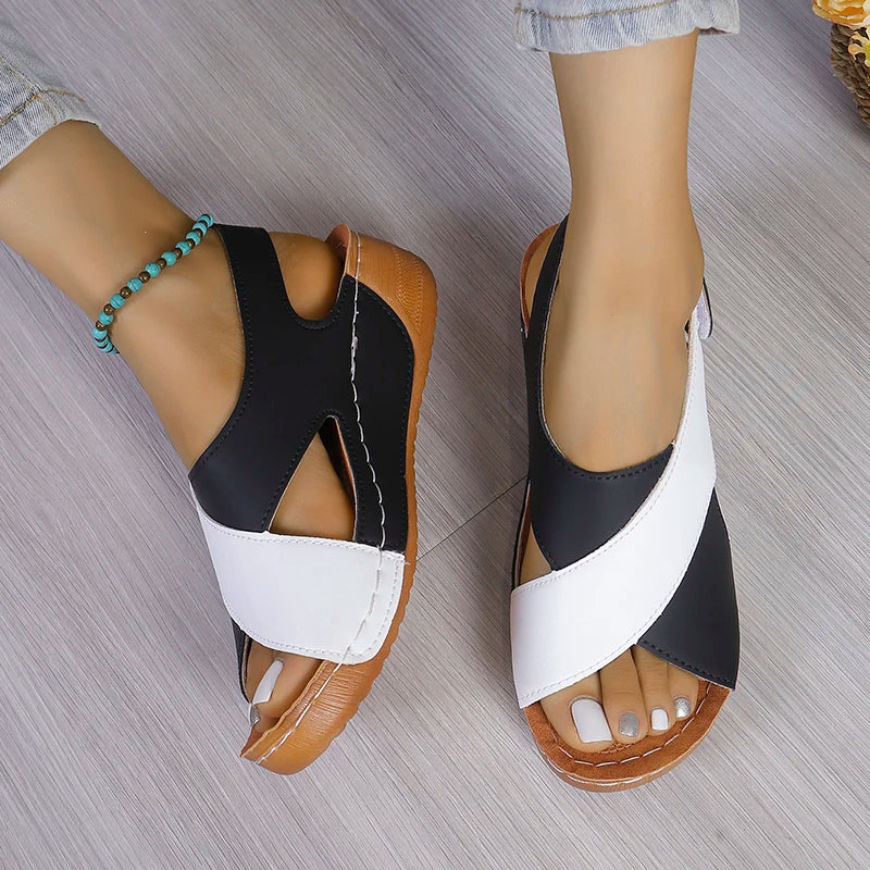 New Women's Contrast Color Wedge Sandals Summer Peep Toe Non Slip Beach Shoes Woman Comfortable Platform Roman Sandalias Mujer