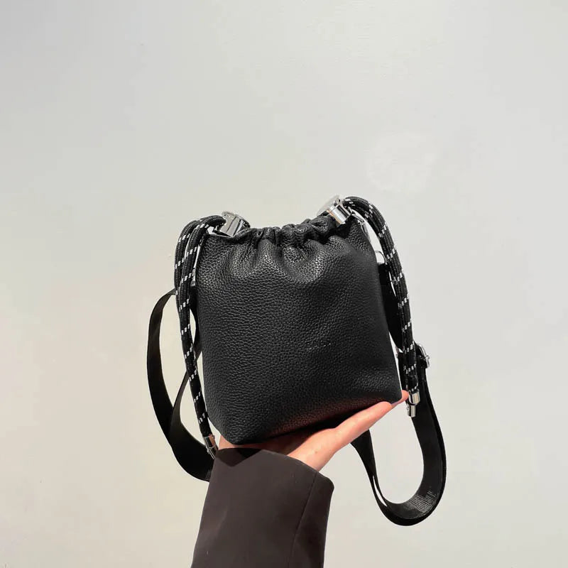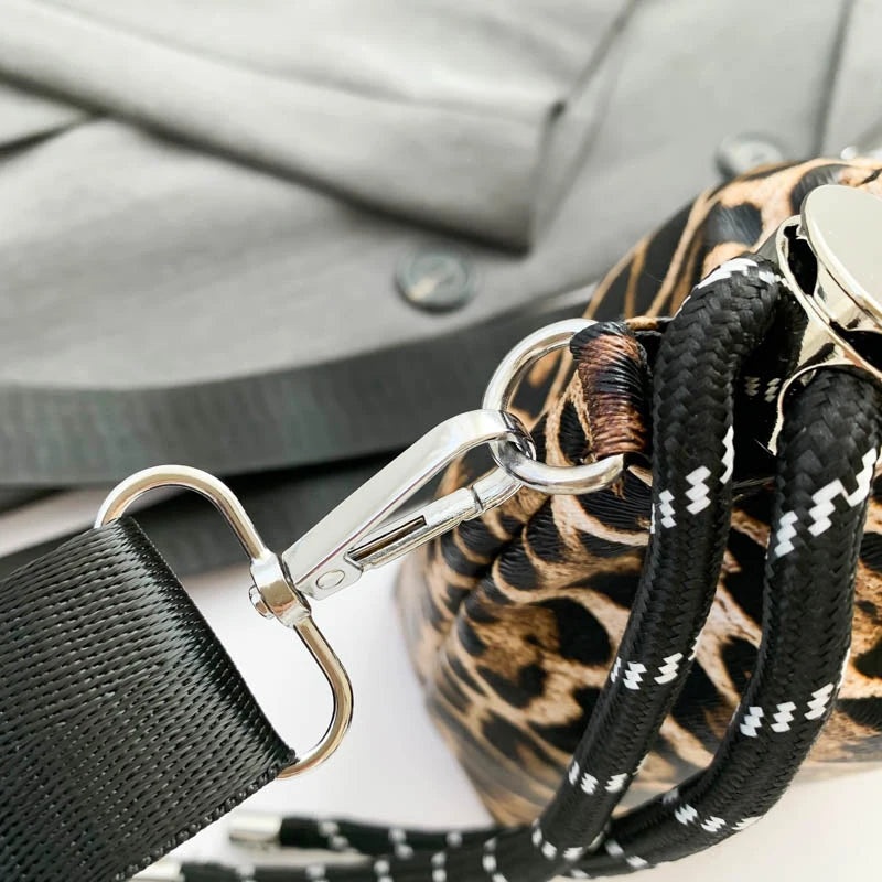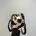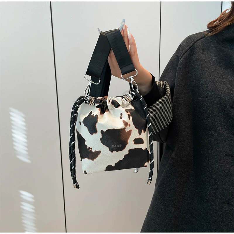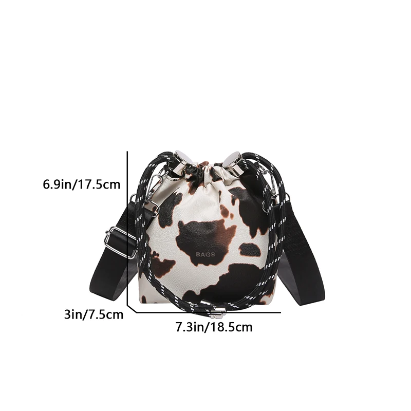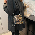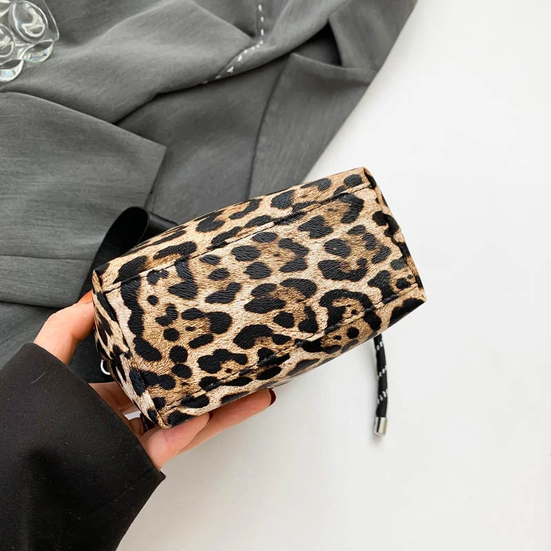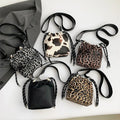 New Women's Mini Leopard Crossbody Bag Pu Leather Bucket Bag Drawstring Shoulder Bag Wide Strape Women's Bags Large Storage Bags