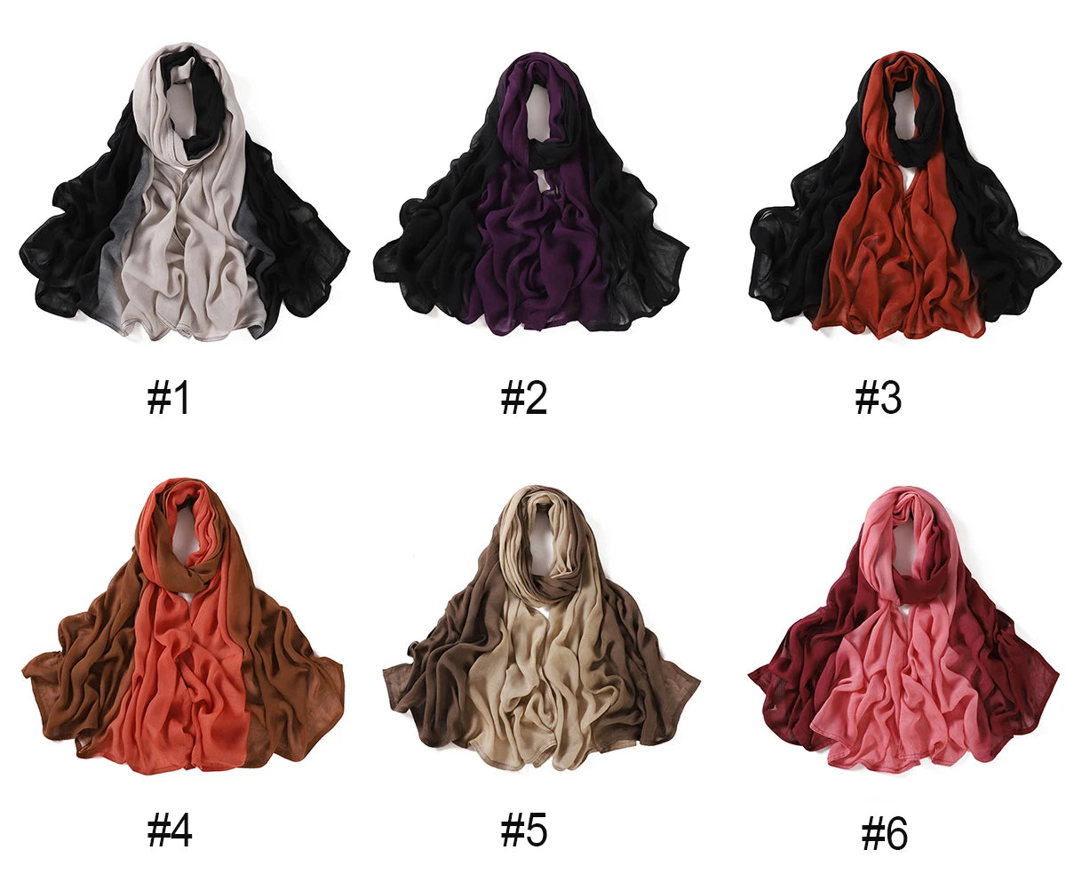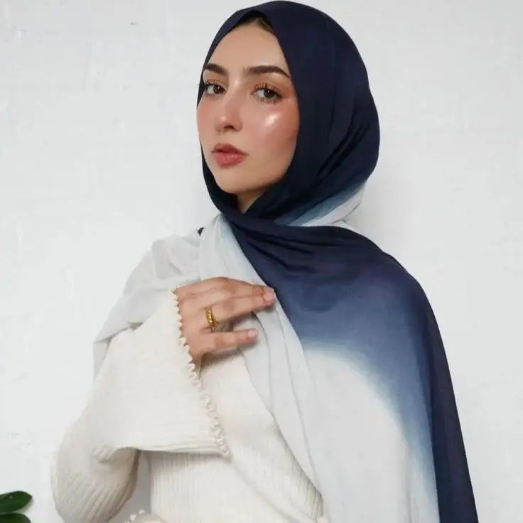 The hijab scarf features an ombre color gradient, adding a touch of elegance and sophistication to your outfit.