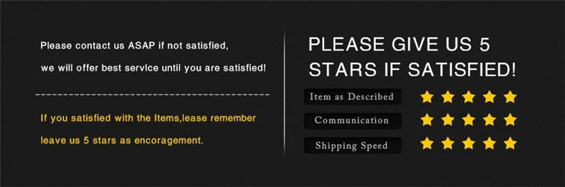 2. If you are not satisfied our porducts, pls contact us before you leave negative feedback. We guarantee we will make every attempt to resolve the issue. Thank you.