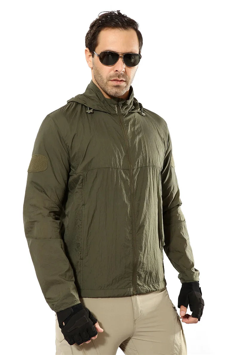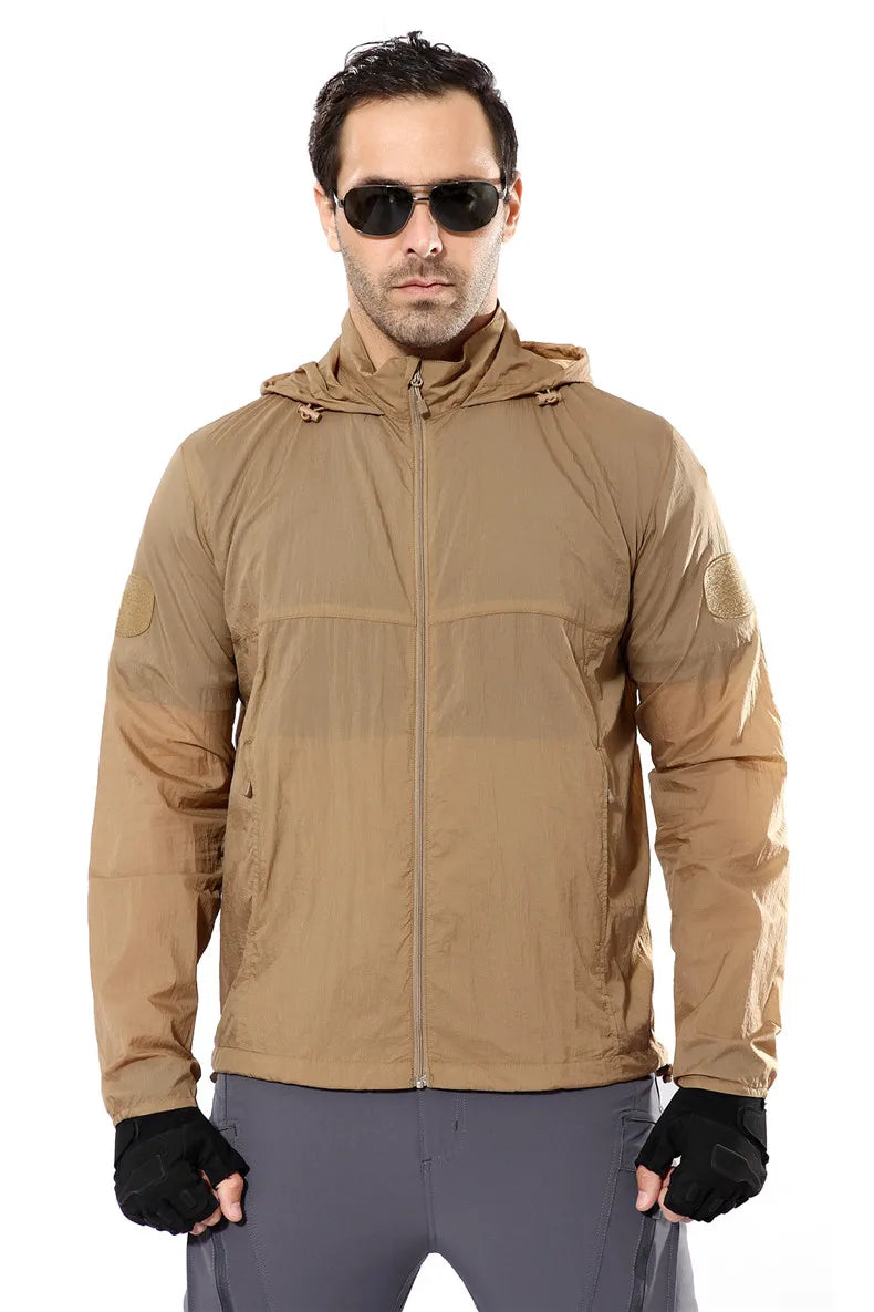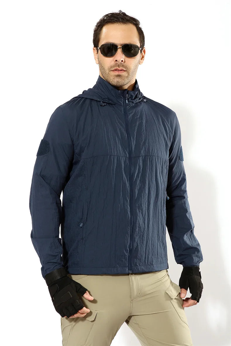Outdoor Jacket For Men Quick Dry Tactic Skin Jacket Men Sunscreen Clothing Hooded Camouflage Ultra Light Thin Windbreaker Jacket