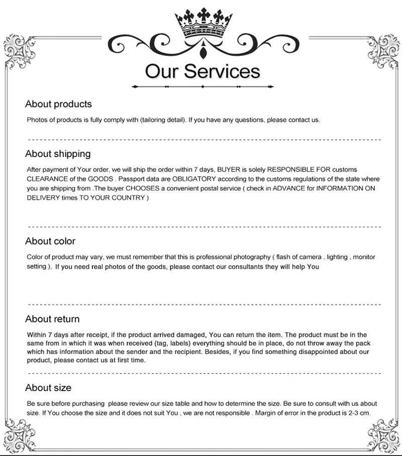 Dear friend, please check the size carefully before placing an order.