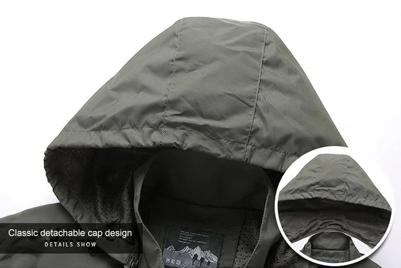Windbreaker Men Jacket Waterproof Outdoor Tactical Hooded Bomber Coat Sports Military European SizeS-7XL Field Climbing Fishing Thin Outwear