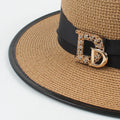 Panama Fashion Ladies Elegant Raffia Straw Hat Rhinestone Letters Vacation Travel High Quality Ladies Summer Topper Banquet Hat