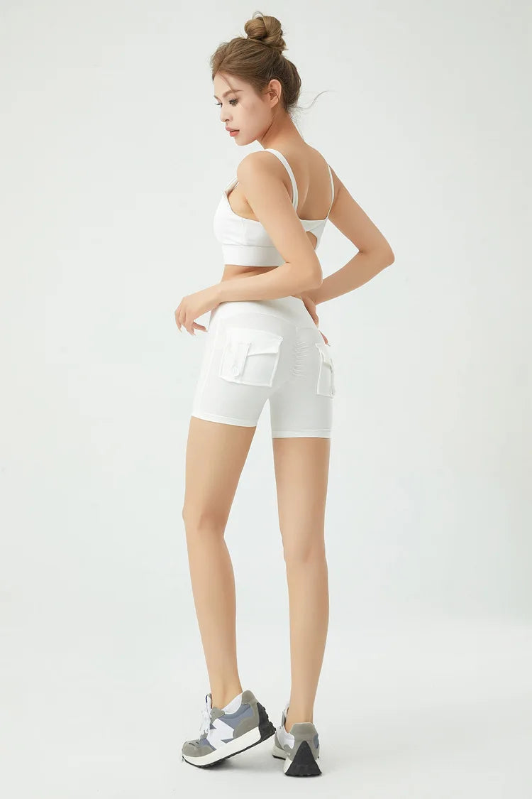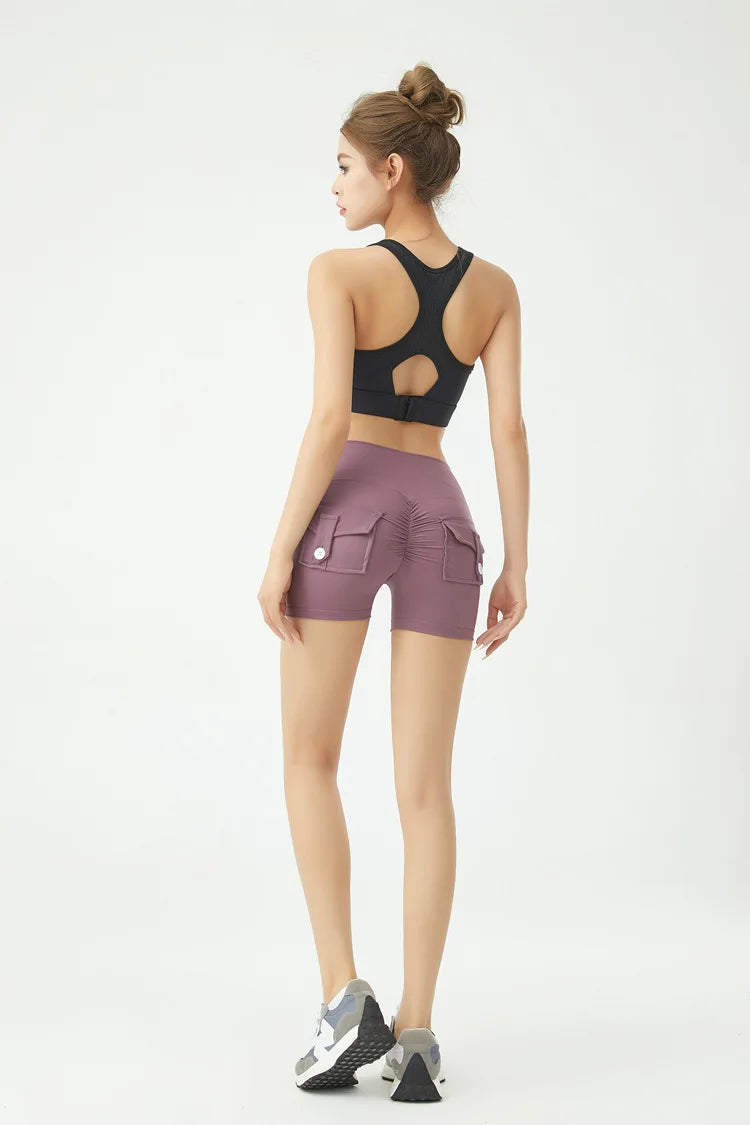 Peach Butt Fitness Shorts Women's Exercise Three-Quarter Pants Cargo Air Dry Pocket Yoga Tight Lift Summer