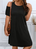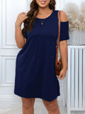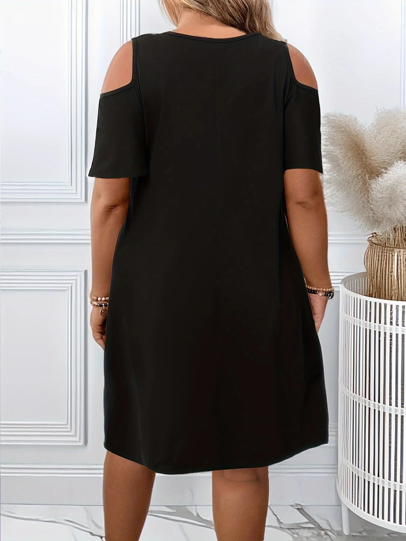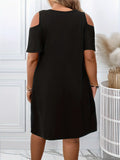 Elevate your wardrobe with our Plus Size Black Cold Shoulder Dress, perfect for any casual occasion. This chic dress features a modern cold shoulder design that effortlessly combines style and comfort. The loose fit drapes elegantly over your curves, while the knee-length cut provides a flattering silhouette for any body type. Crafted from soft, breathable fabric, it ensures you stay comfortable and stylish all day long. Ideal for day-to-night transitions, this versatile piece can be dressed up with heels or kept casual with flats. Embrace the simplicity and elegance of this must-have addition to your closet.