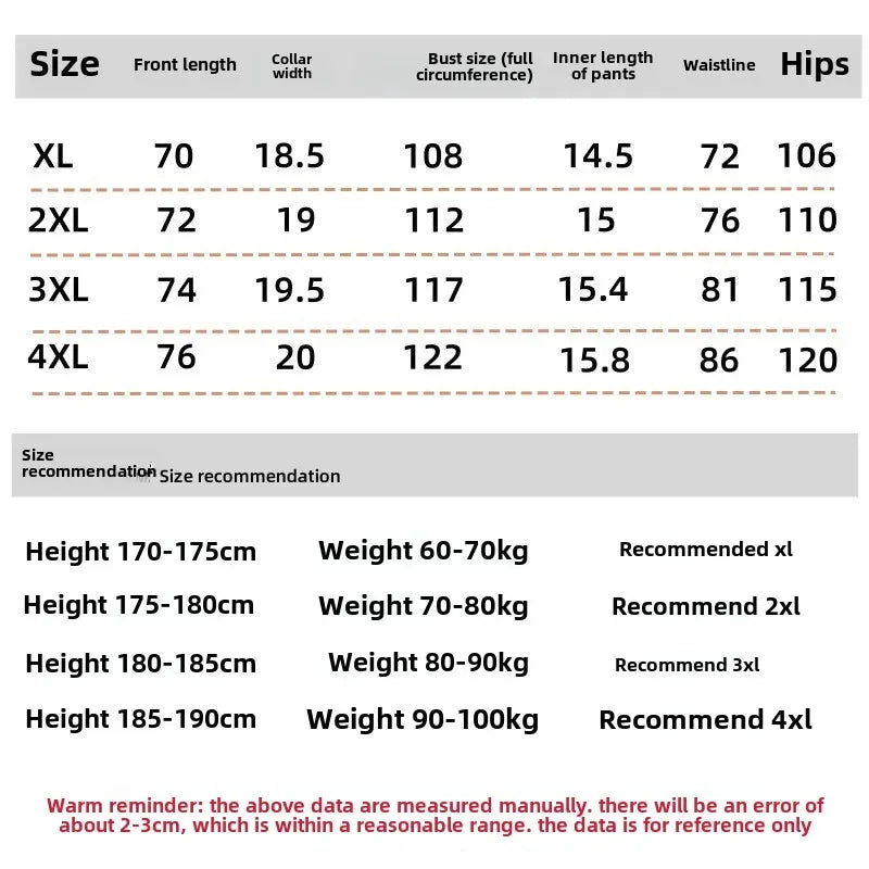 size_info: {"sizeInfoList":[{"length":{"cm":"158-163","inch":"62.20-64.17"},"size":"XL","vid":-1},{"length":{"cm":"163-172","inch":"64.17-67.72"},"size":"2XL","vid":-2},{"length":{"cm":"172-178","inch":"67.72-70.08"},"size":"3XL","vid":-3},{"length":{"cm":"175-185","inch":"68.90-72.83"},"size":"4XL","vid":-4}]}