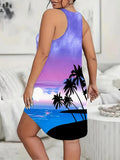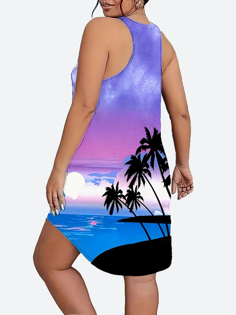 Plus size summer new plus size women's sexy 3D printed dress women's sleeveless dress