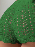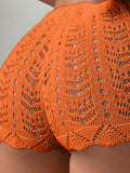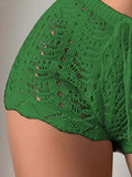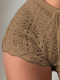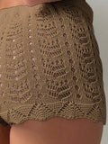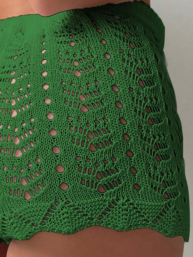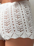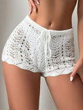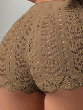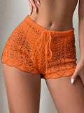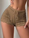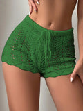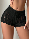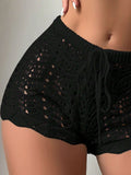 Polyester100.00% Hollow Drawstring Open Waist Knitted Bikini Blocked Women's Shorts