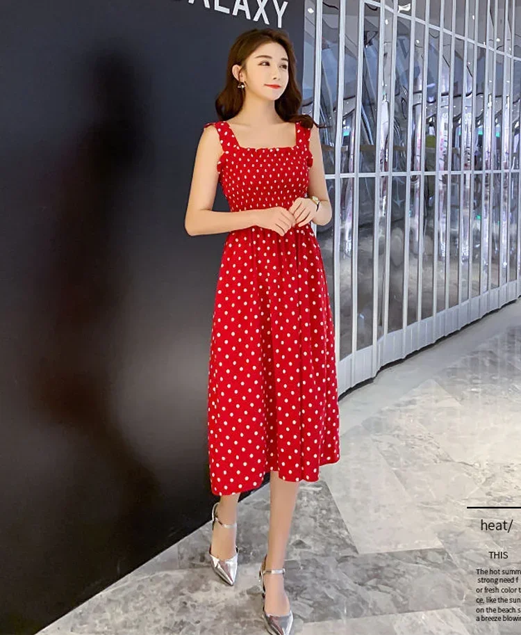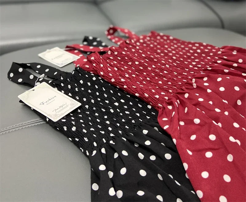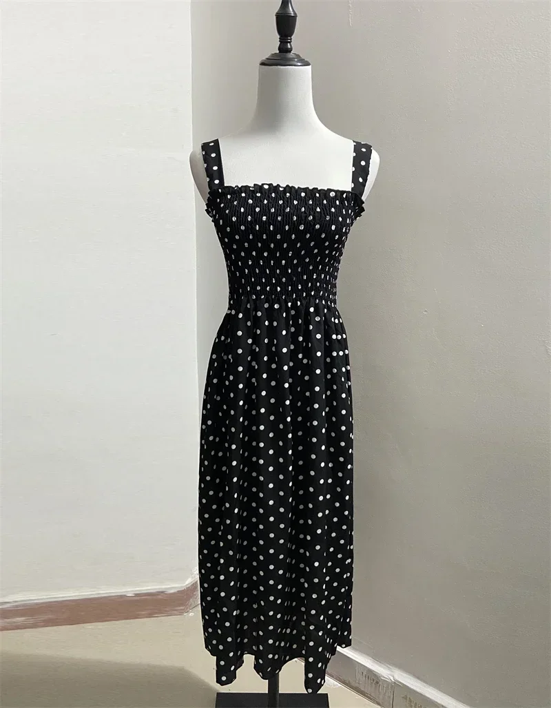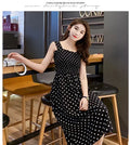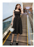 robe femme Summer Polka Dot Womens Dresses Elegant Square Neck Sleeveless Chiffon Long Dress Super Discount vestidos para mujer
