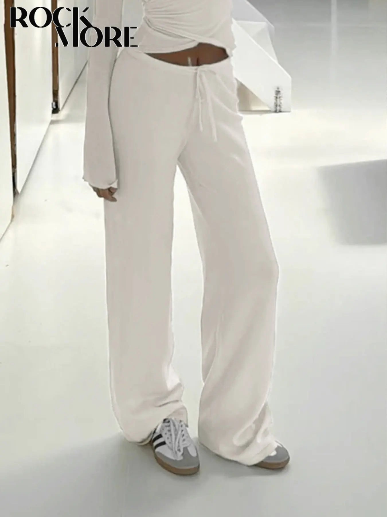Rockmore Casual Solid Long Pants for Women Korean Harajuku Basic Drawstring Sweatpants Autumn Straight Trousers Y2k Clothes 2024