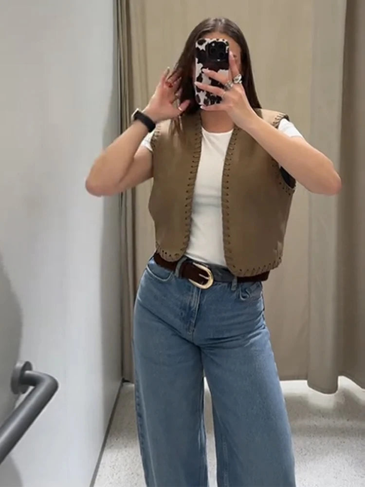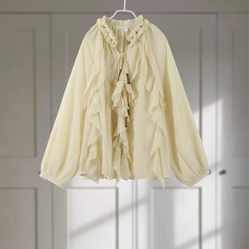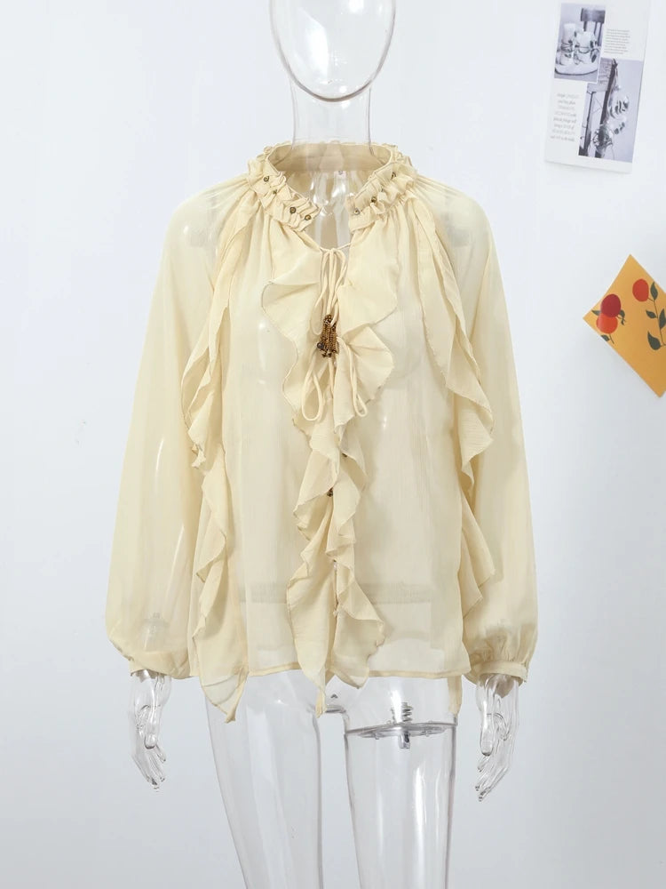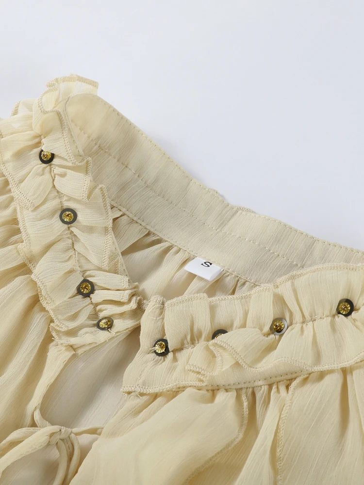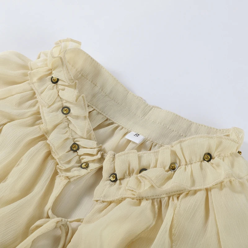 Ruffles Shirt Skirt 3 Piece Set Women Lace Up Vest Top Quilted Waistcoat Mini Puff Skirt 2025 Summer Chic All-matching Lady Sets