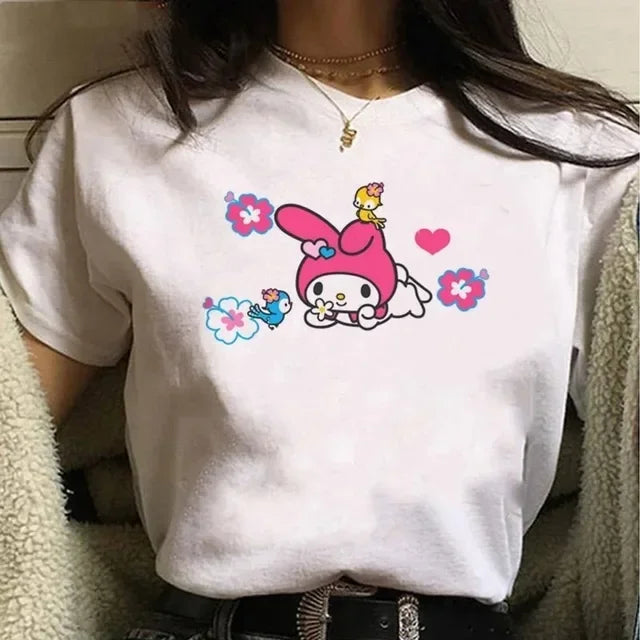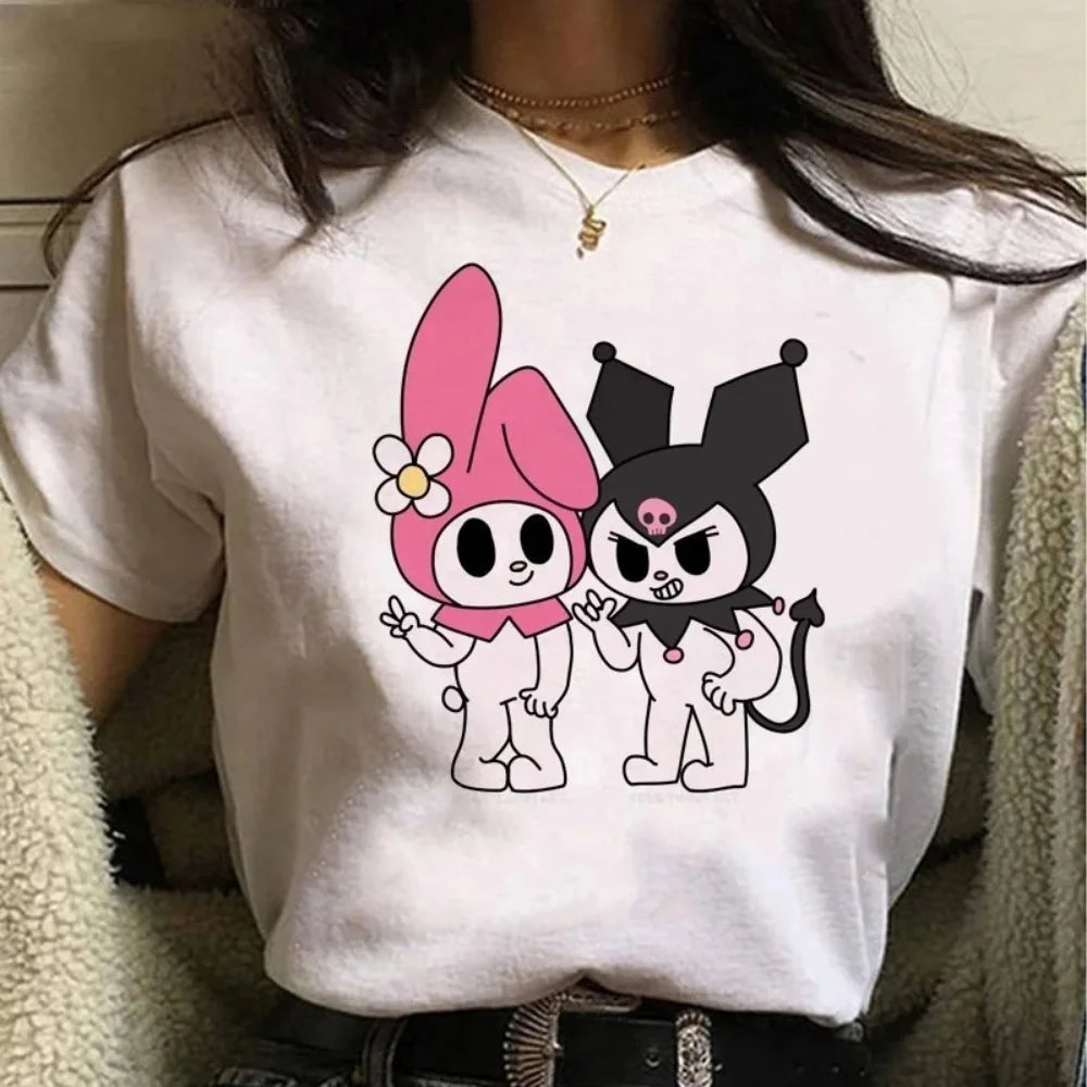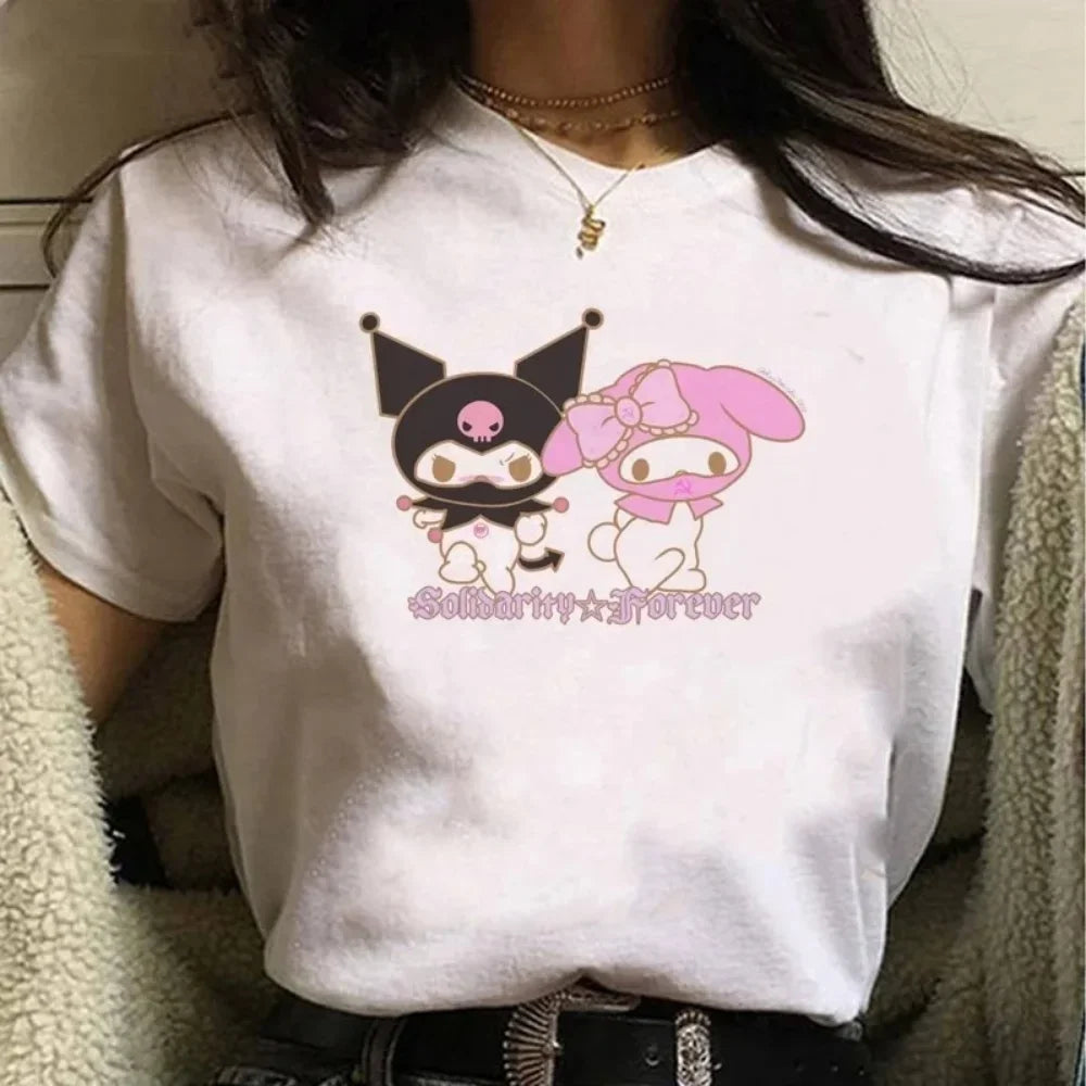 Sanrio Y2k Kawaii Clothes Women T-shirt Harajuku Cartoon Tees My Kuromied Melodyed Female Tshirt Loose Summer Top Family Outfits