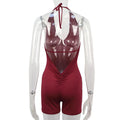 Sexy Backless Playsuits Women Sports Fitness Summer Fashion Black New Rompers Slim Casual Hollow Out Bandage Halter Playsuits