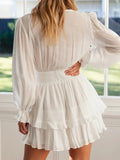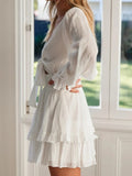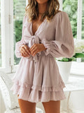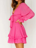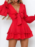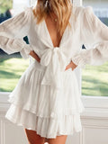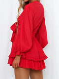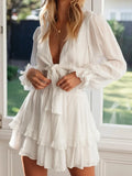 Sexy Cascading Ruffles Women Long Sleeve Mini Dress Deep V-Neck Lace-Up Casual Ladies Party Dress Sweet Streetwear Dropshipping