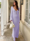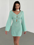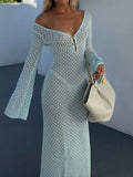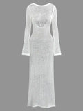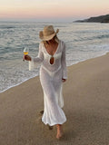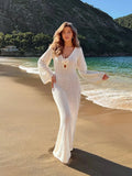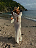 Sexy Cover Up Long Sleeve Long Dress Women Backless Beach Wear Bathing Suit Knitting Swimwear knitted Beach Dress Tunic Robe