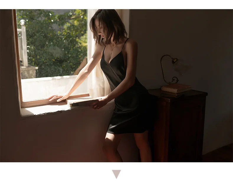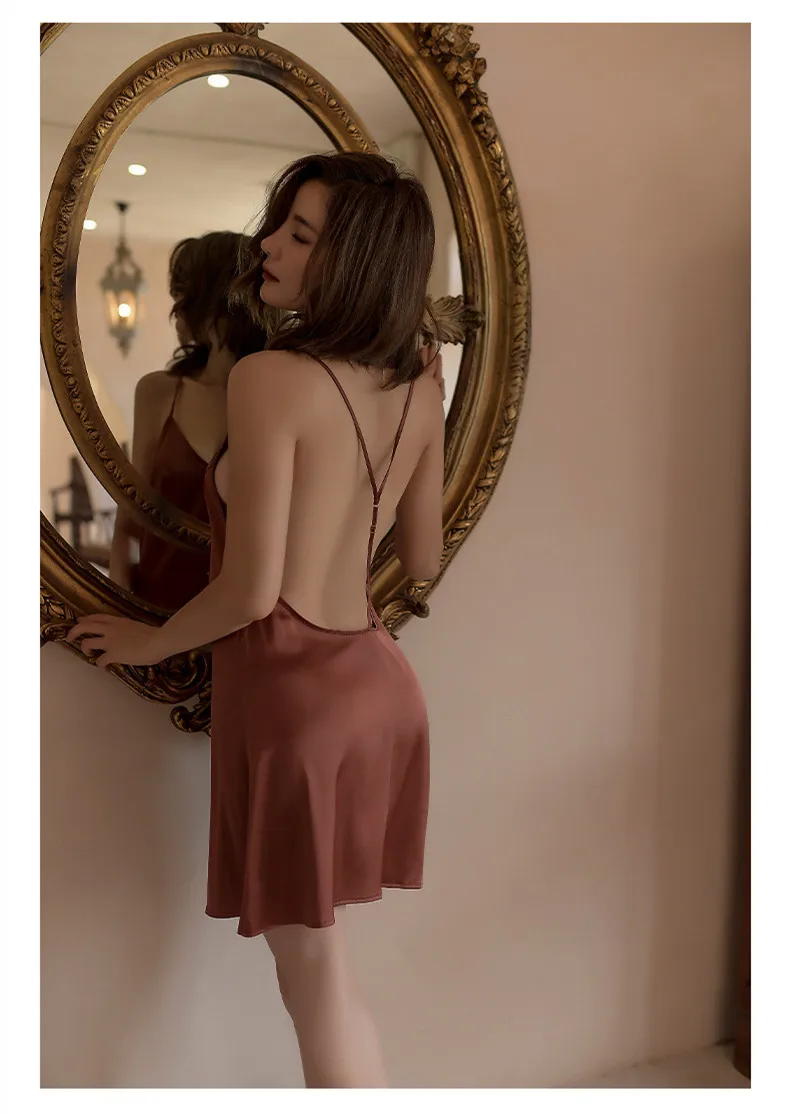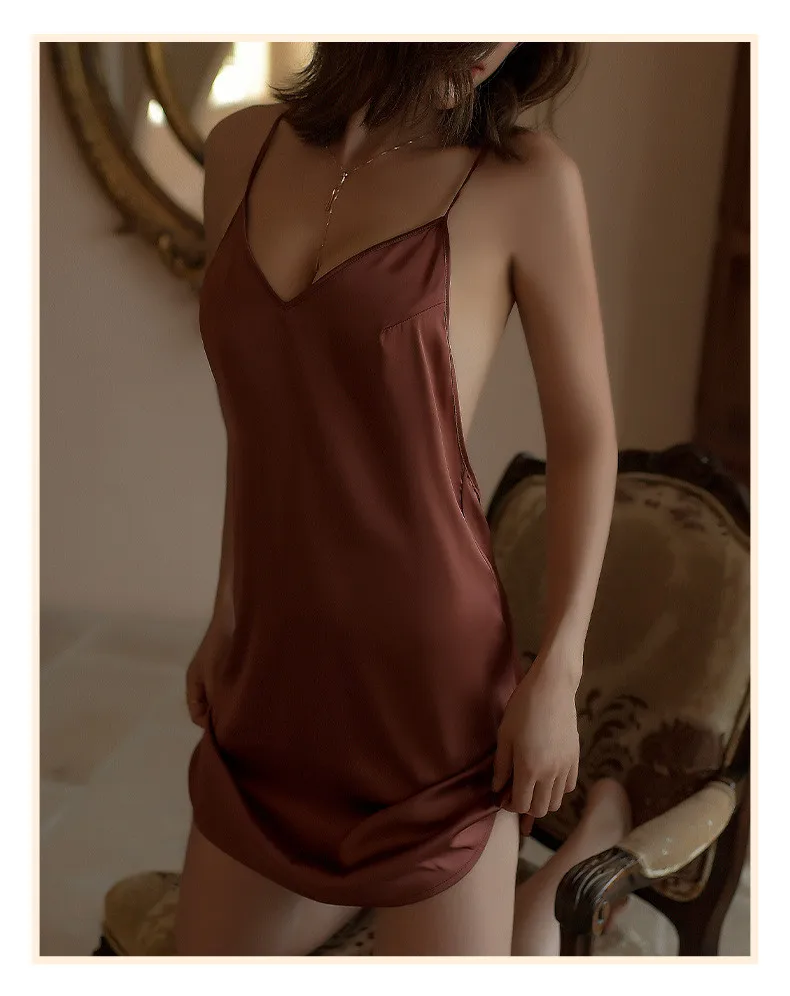 Sexy nightwear women Sleepwear Deep V Suspender Nightdress Beauty Back Simulation Silk Nightgowns Thin Home Clothes