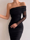 Sexy Women Lantern Sleeve V Neck Solid Maxi Dress Elegant Autumn Ladies Gauze Party Dress Fashion Femme Princess Dress Vestidos