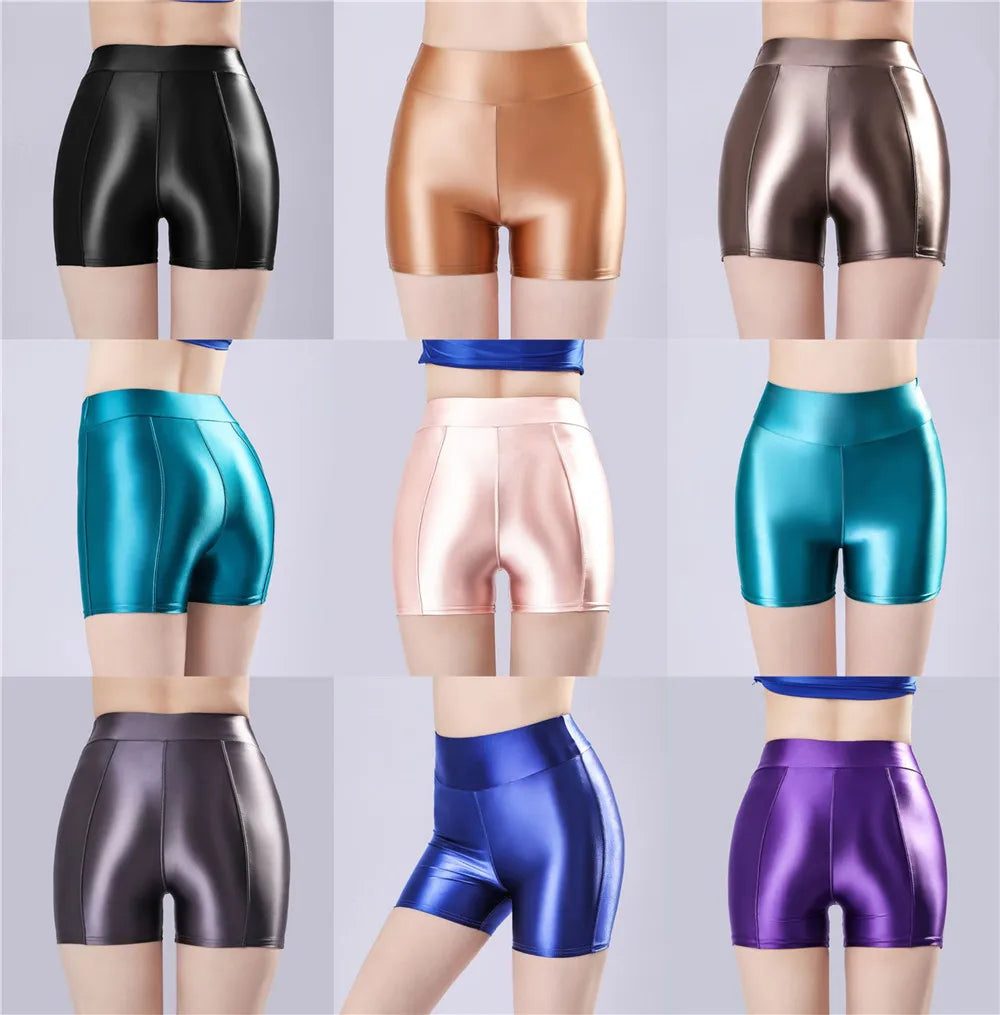 Sexy Women Smooth Shiny Satin Shorts Show Hip Wetlook Summer Shorts Candy Color Bottom Wear Safety Short Fashion Sexy Leggings