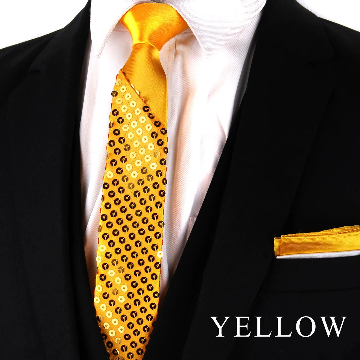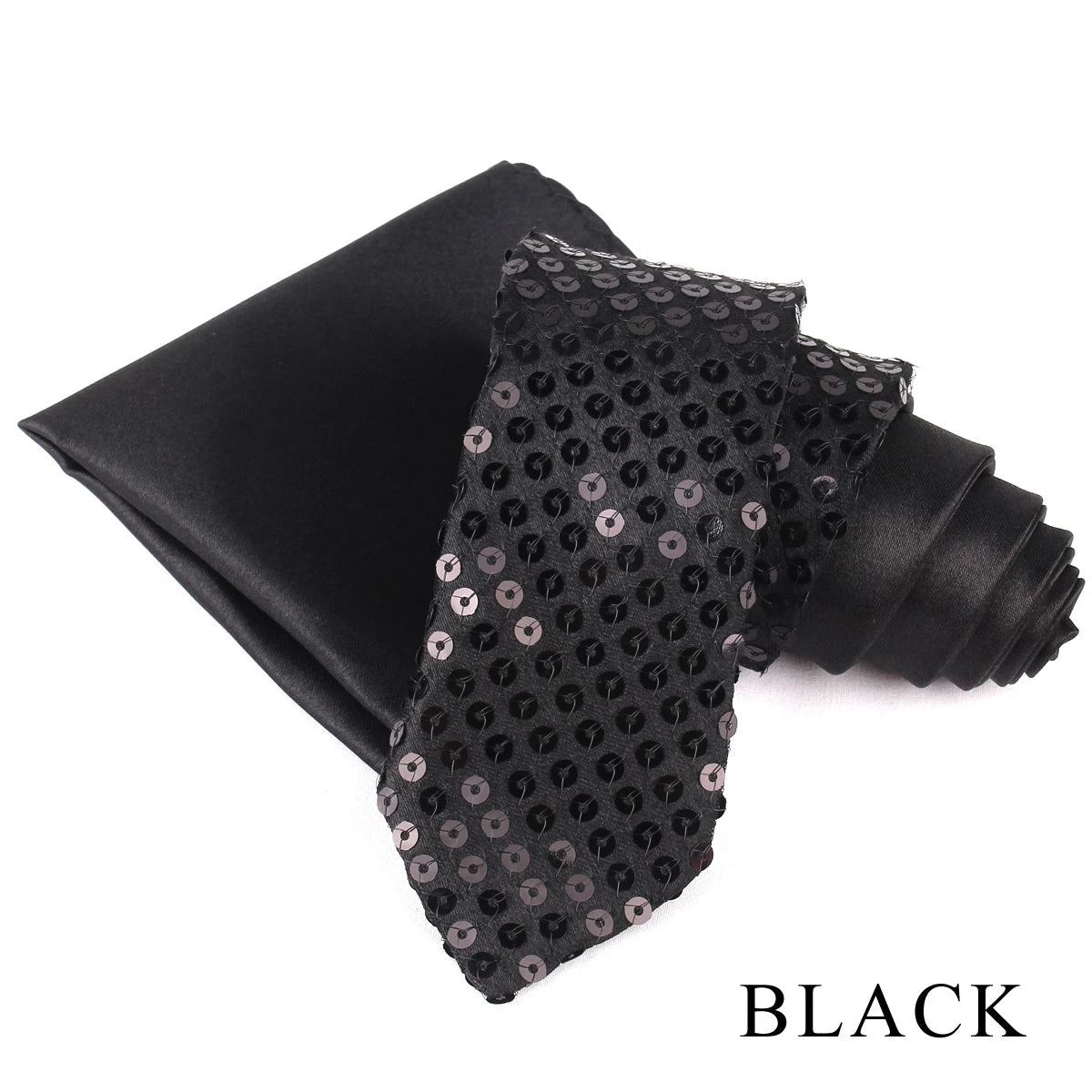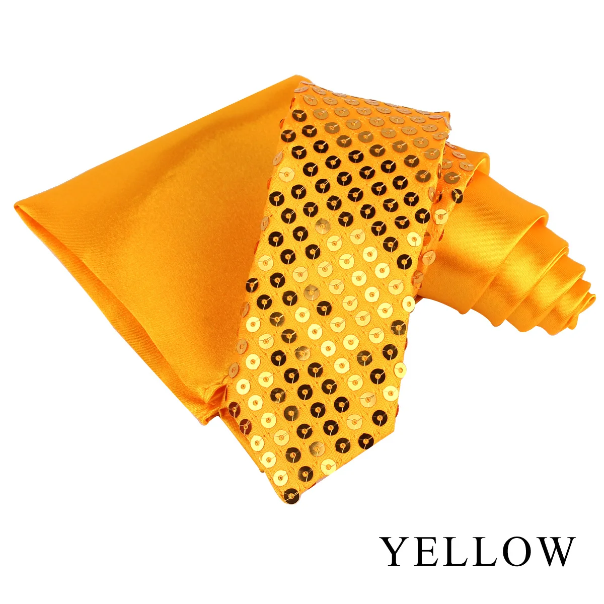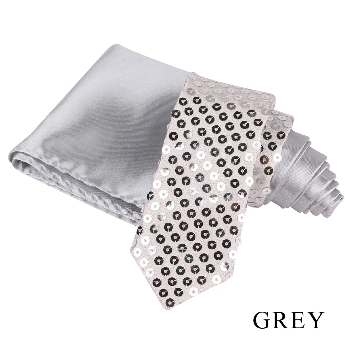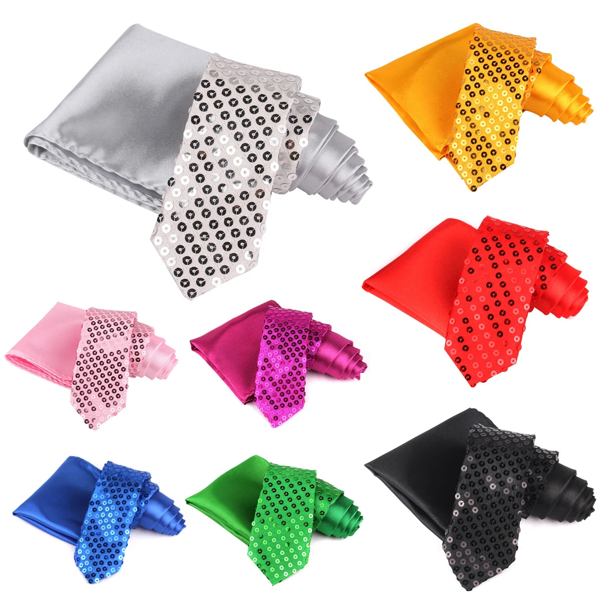 Shiny Sequins Neck Ties and Pocket Square Set Mens Women Stage Performance Prom Paillette Necktie With Handkerchief