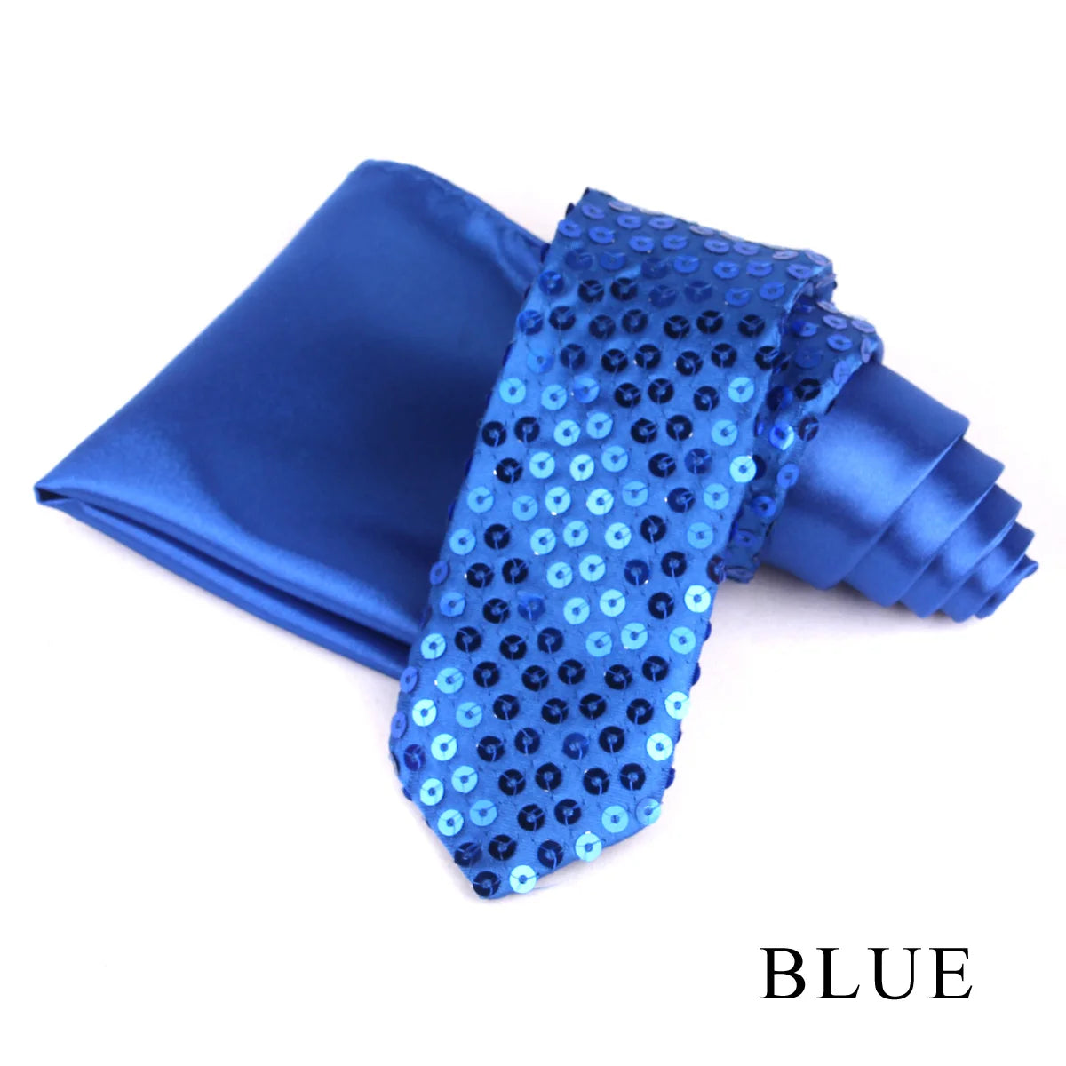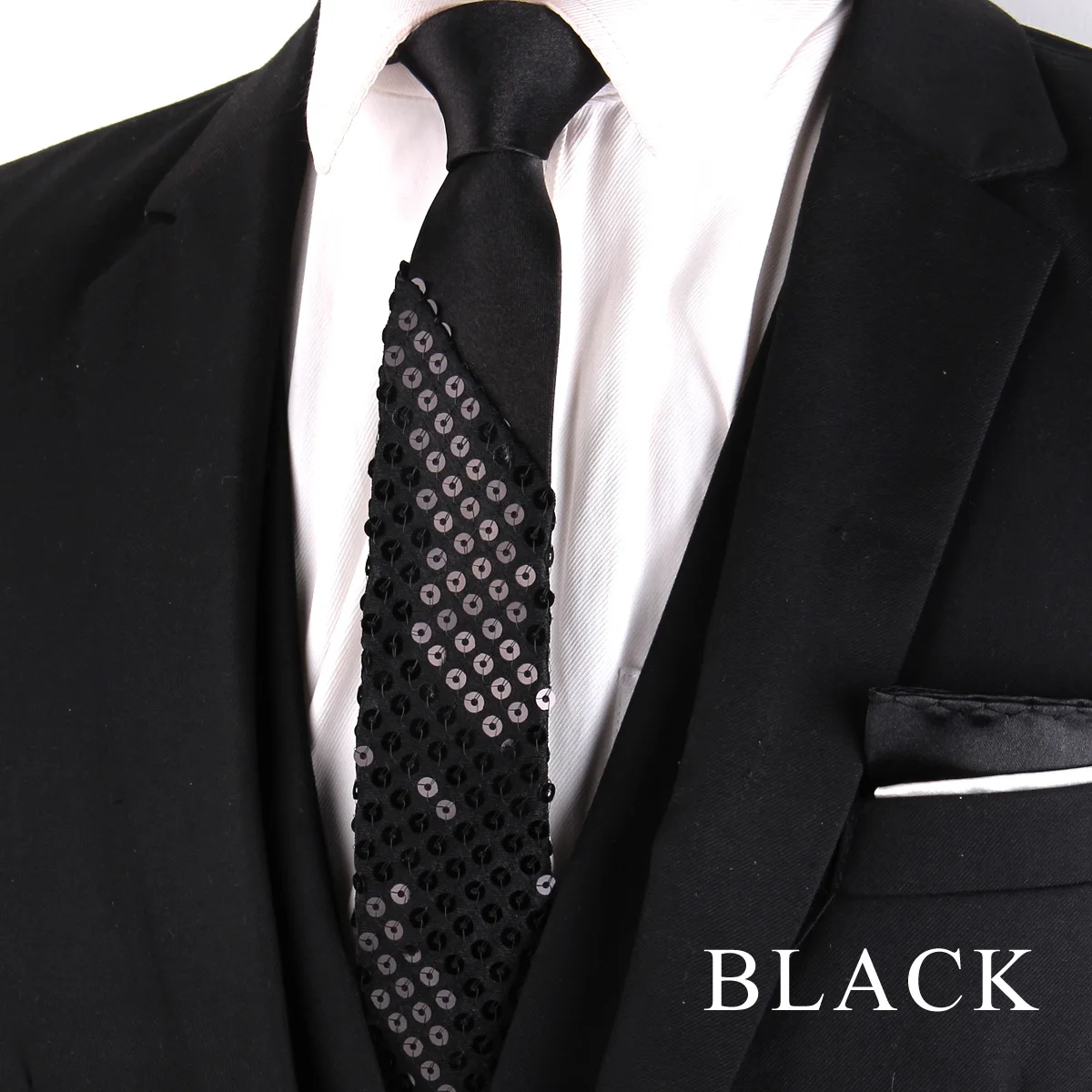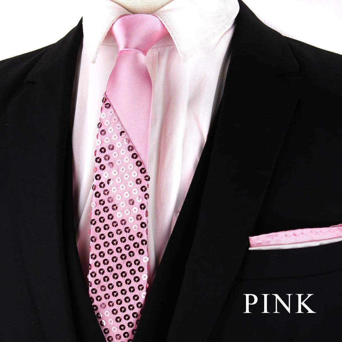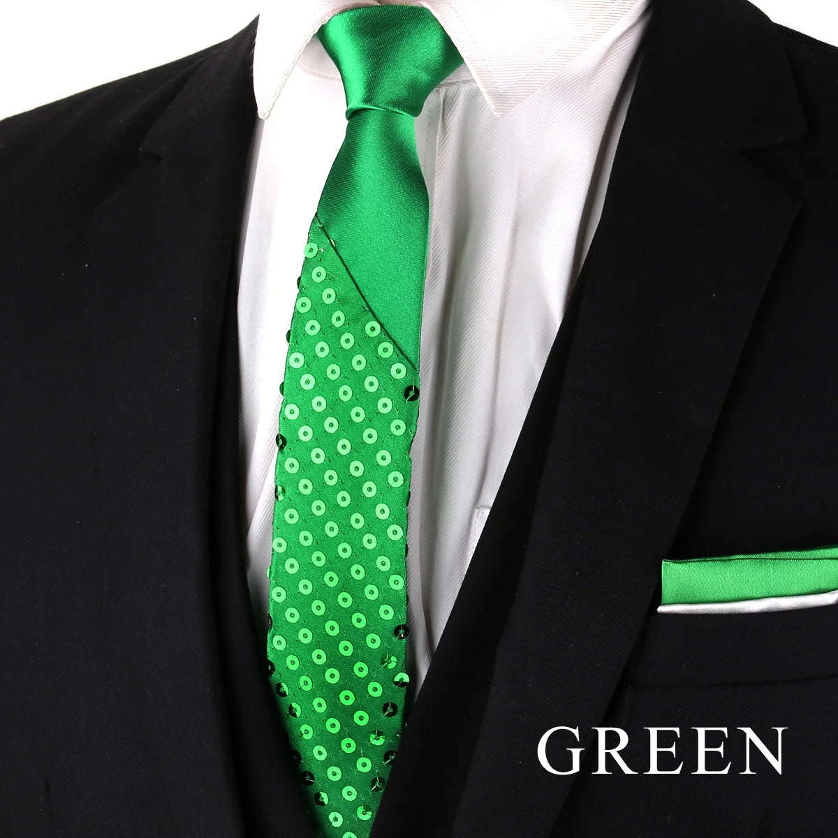 Shiny Sequins Neck Ties and Pocket Square Set Mens Women Stage Performance Prom Paillette Necktie With Handkerchief
