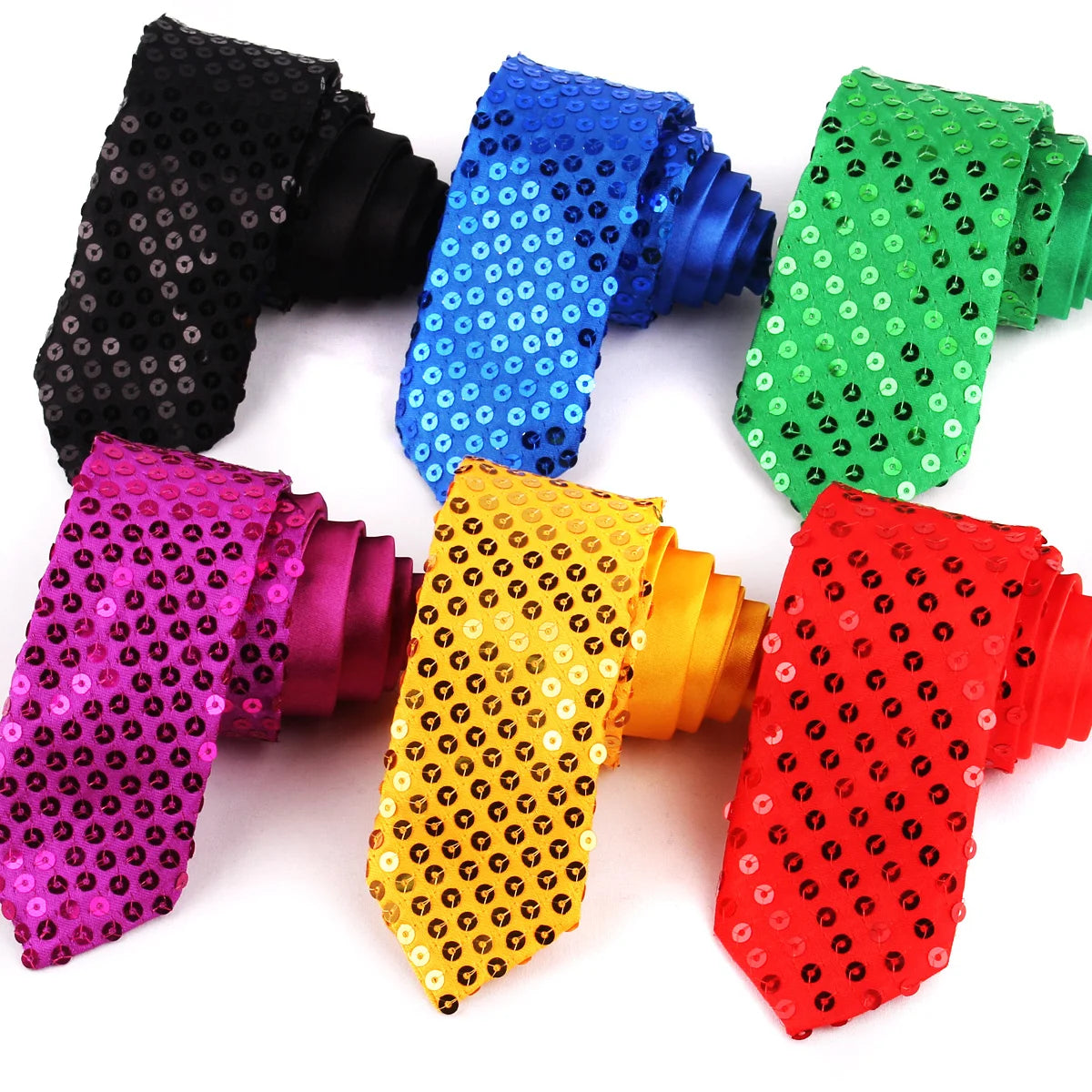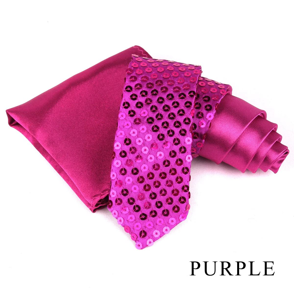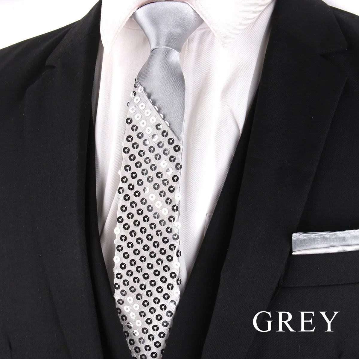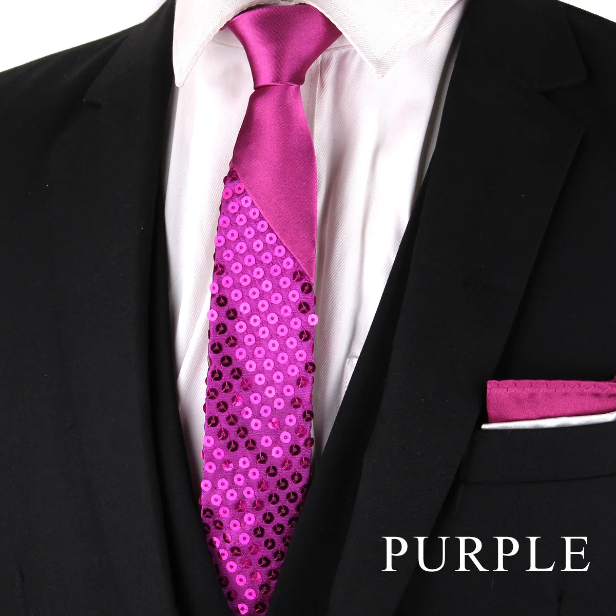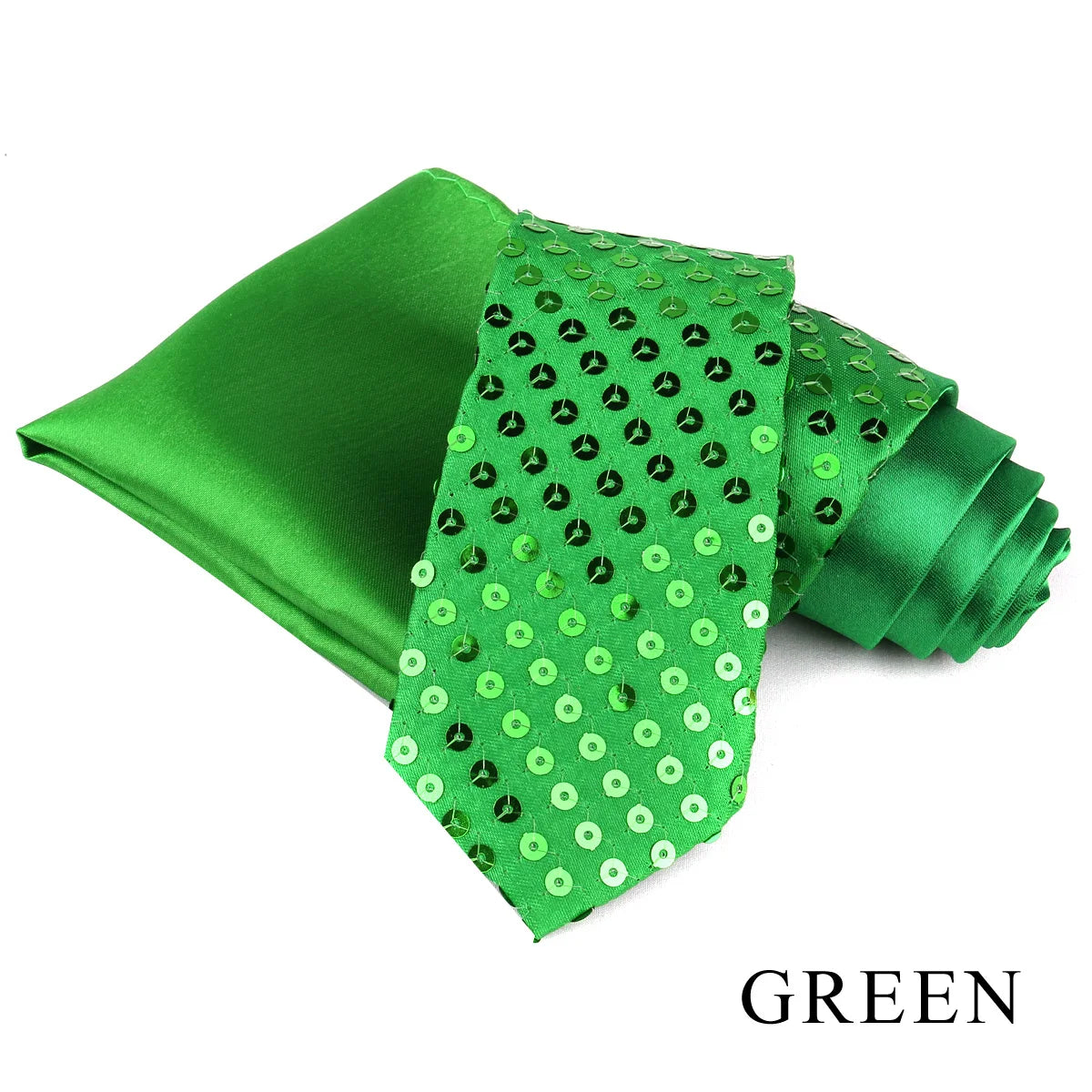 Shiny Sequins Neck Ties and Pocket Square Set Mens Women Stage Performance Prom Paillette Necktie With Handkerchief
