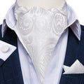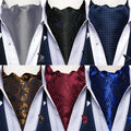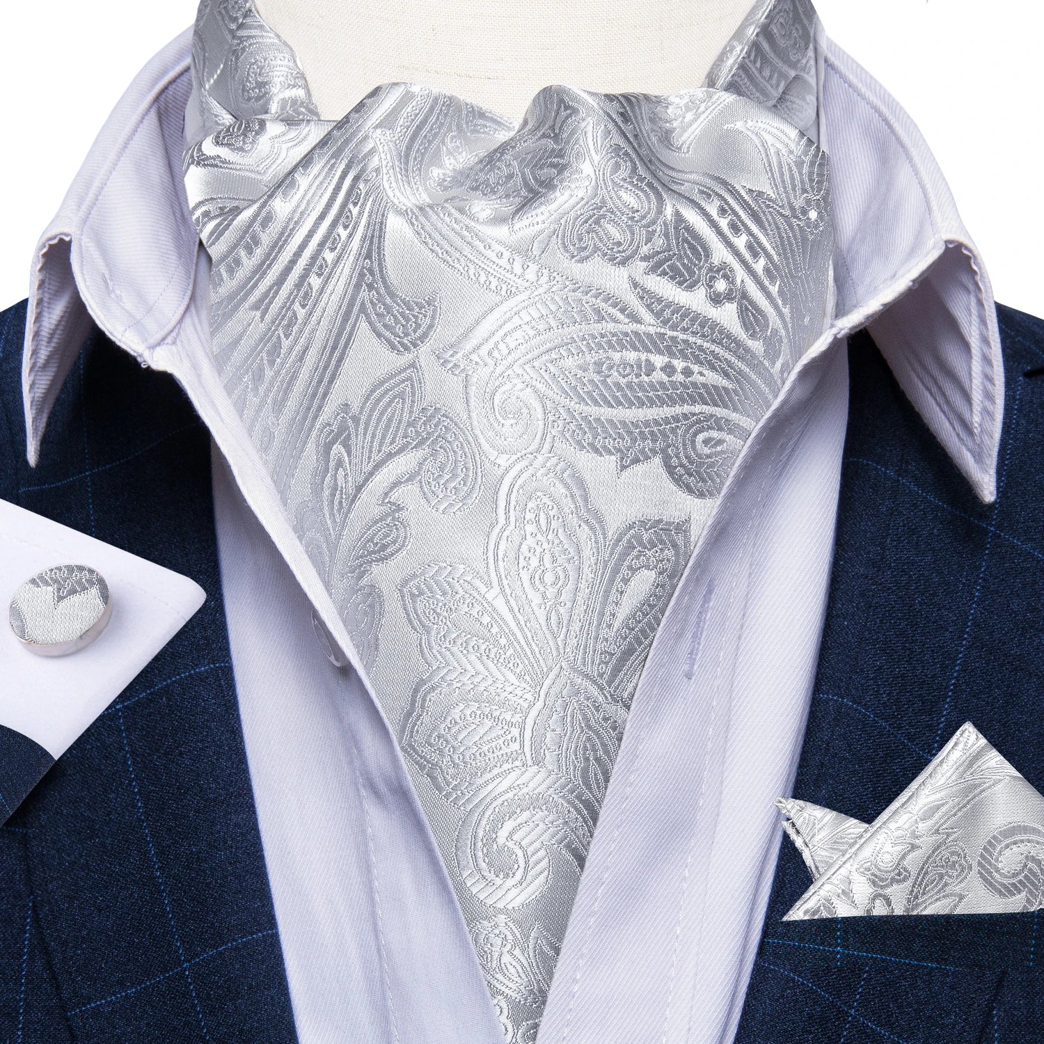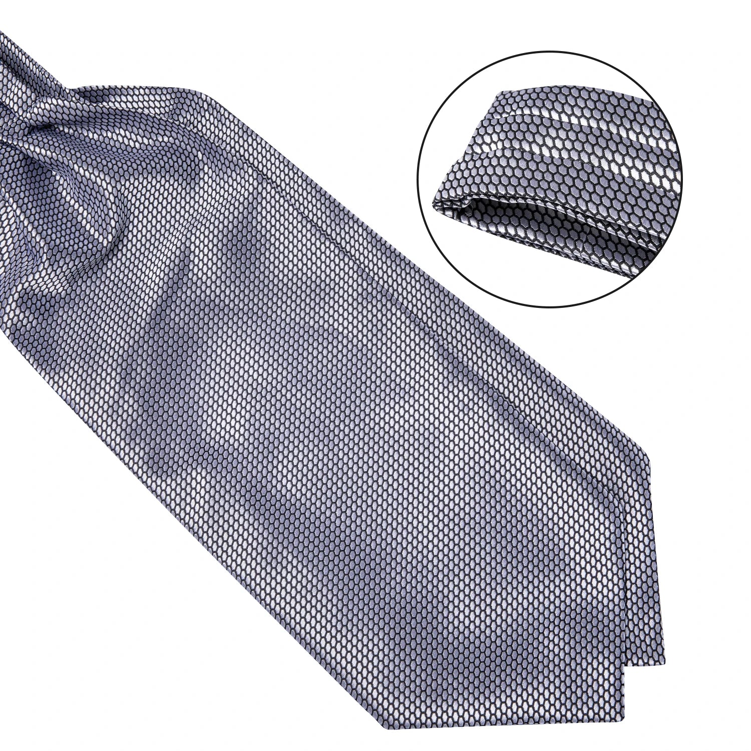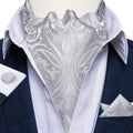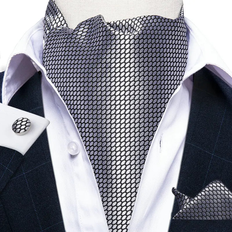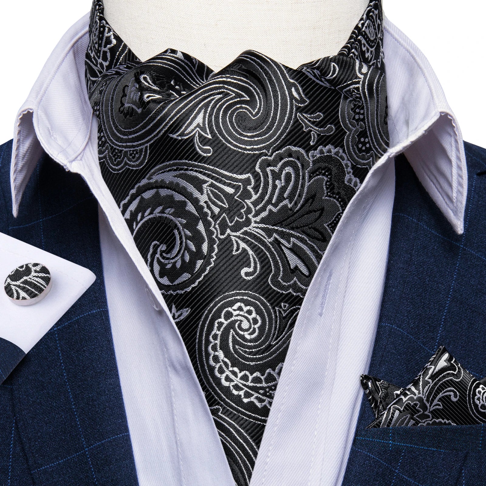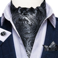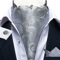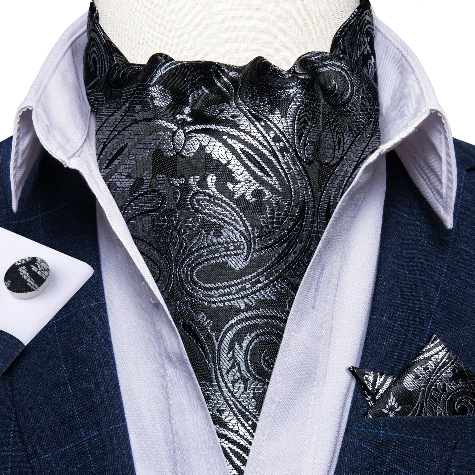 Silver Black Plaid Men's Ascot Tie Handkerchief Cufflinks Vintage Jacquard Floral Paisley British Gentleman Polyester Neck Tie