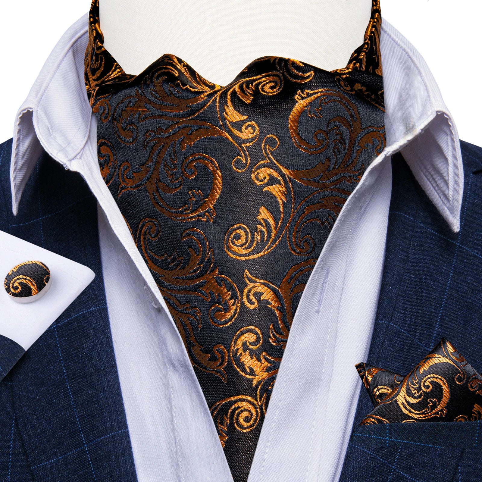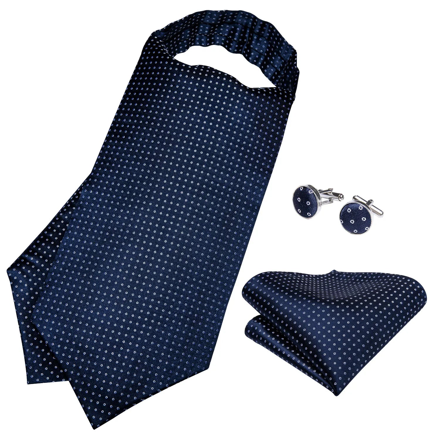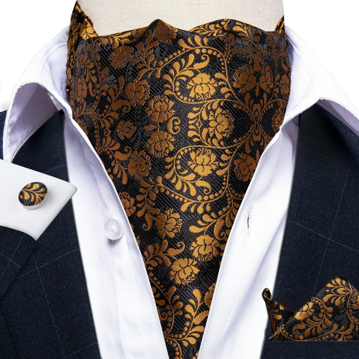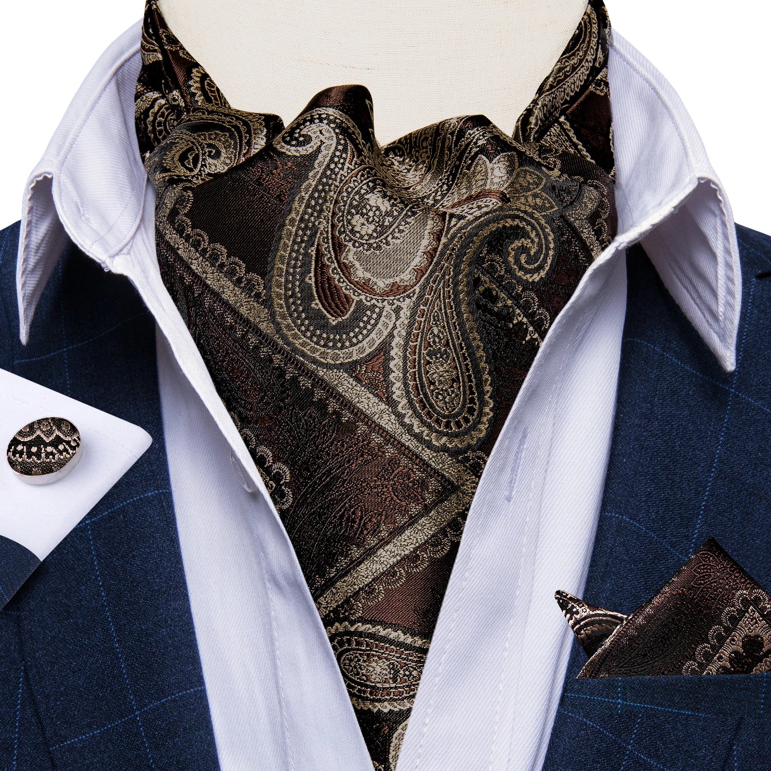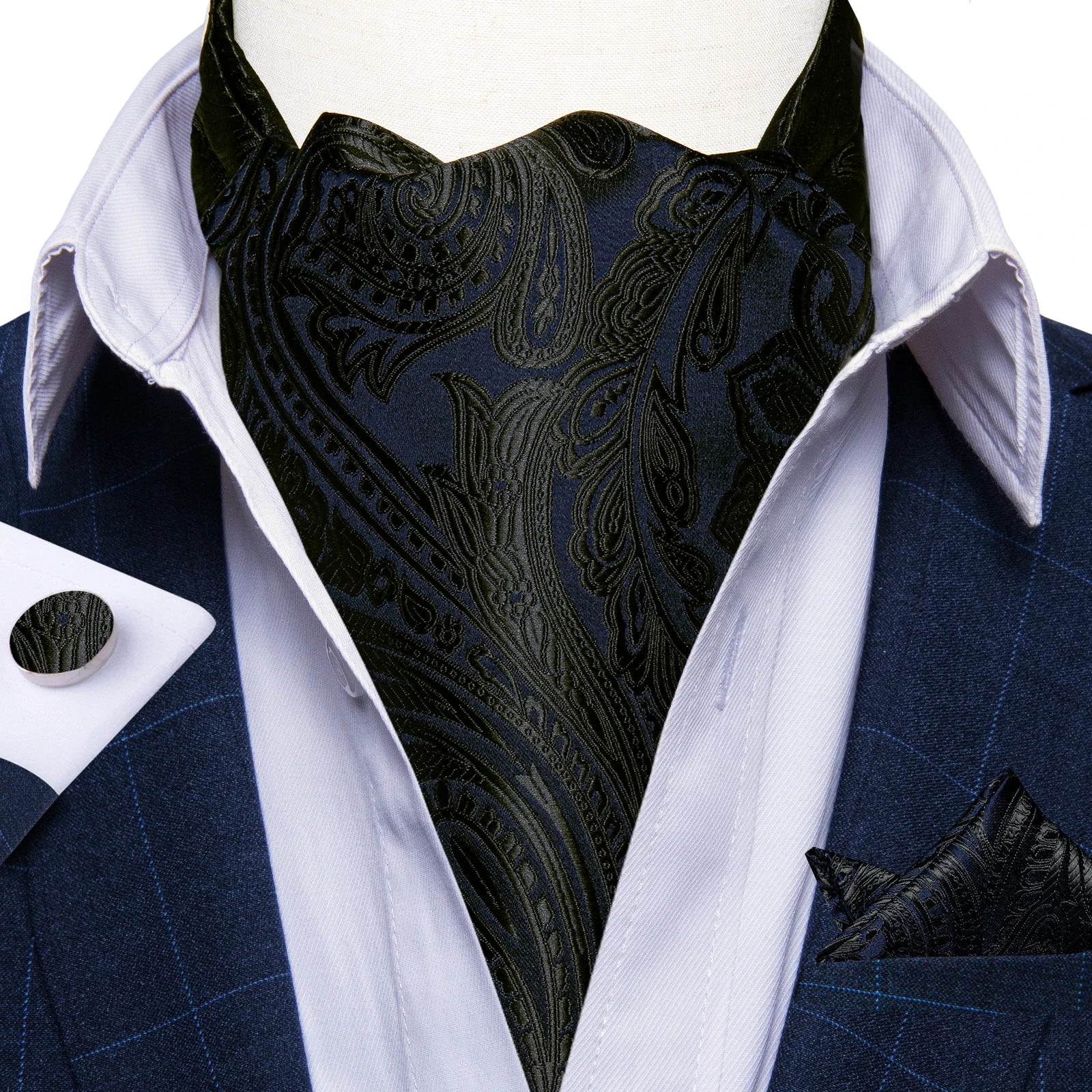 Silver Black Plaid Men's Ascot Tie Handkerchief Cufflinks Vintage Jacquard Floral Paisley British Gentleman Polyester Neck Tie