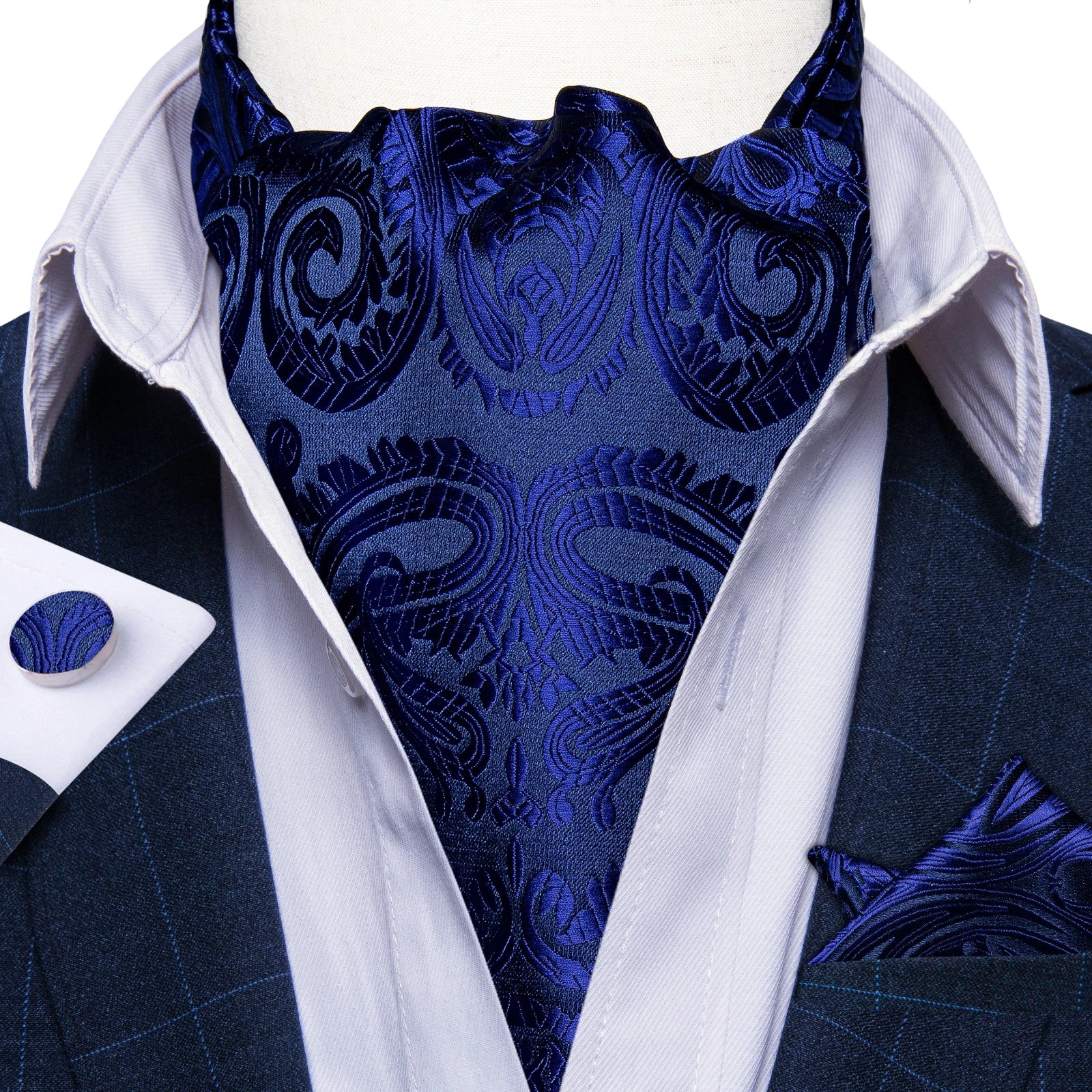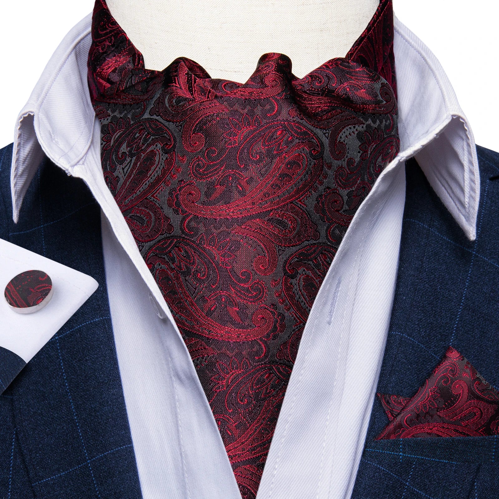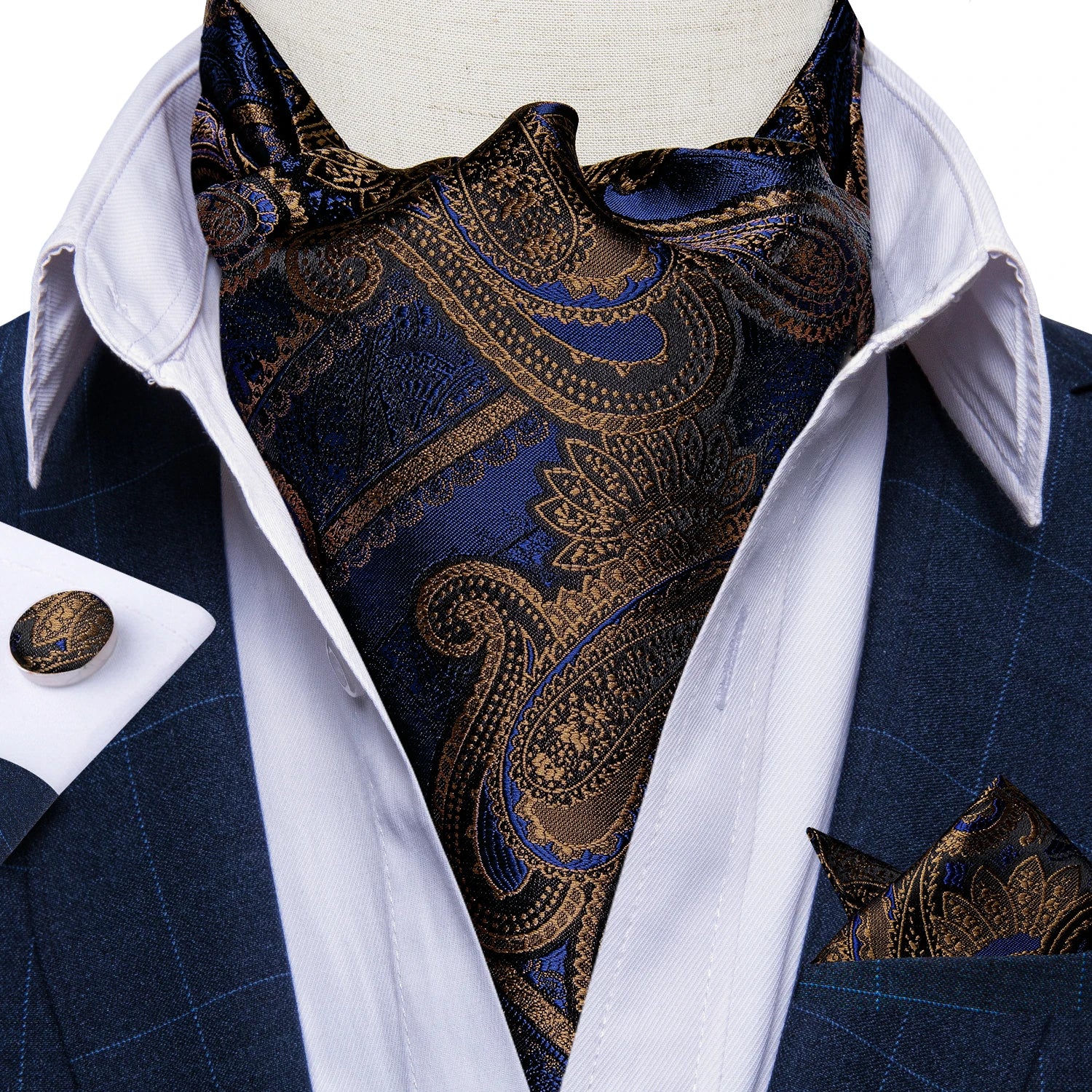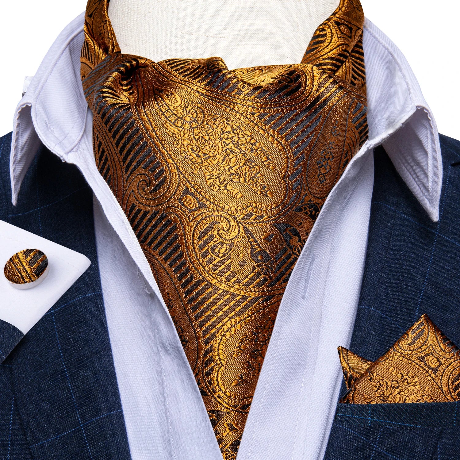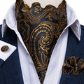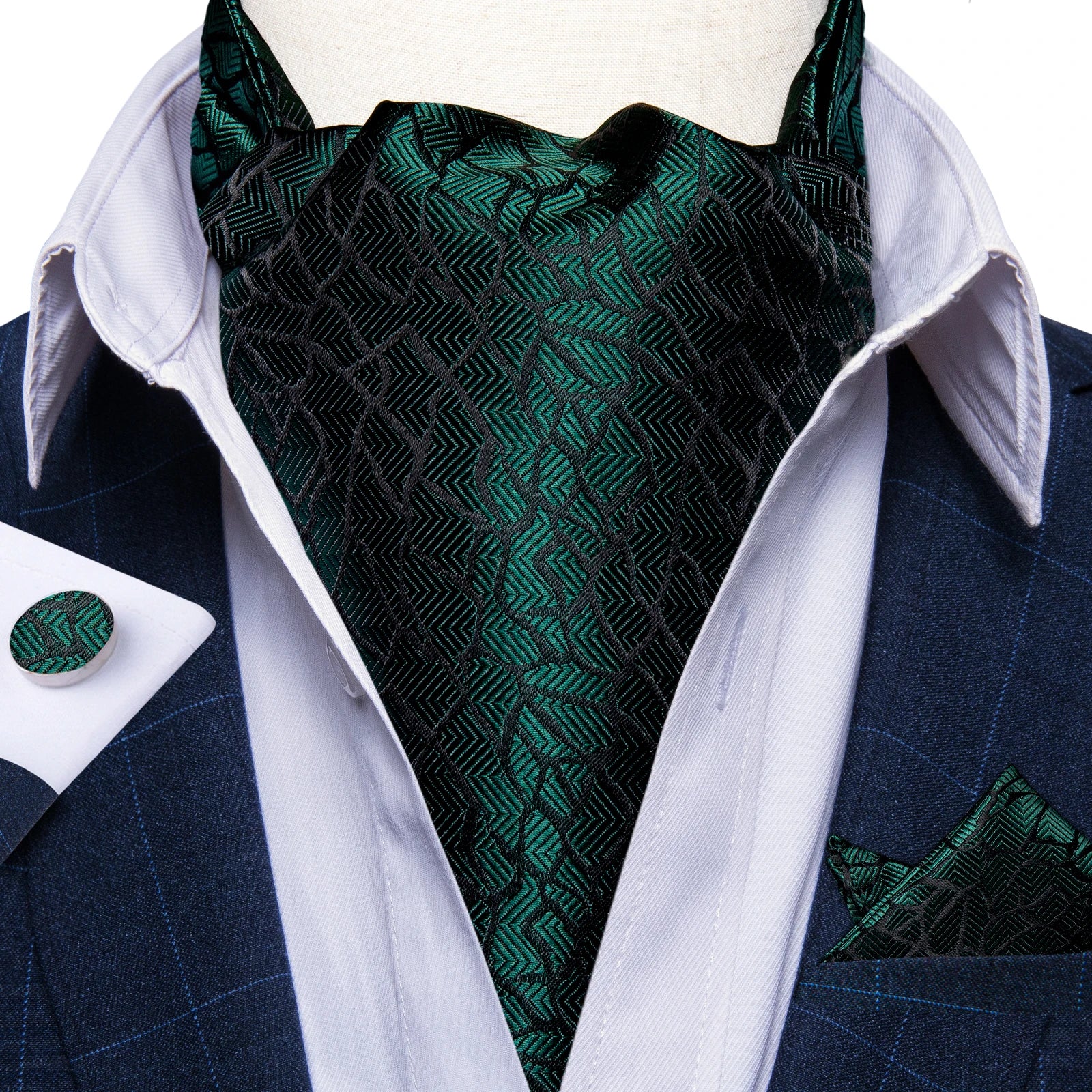 Silver Black Plaid Men's Ascot Tie Handkerchief Cufflinks Vintage Jacquard Floral Paisley British Gentleman Polyester Neck Tie