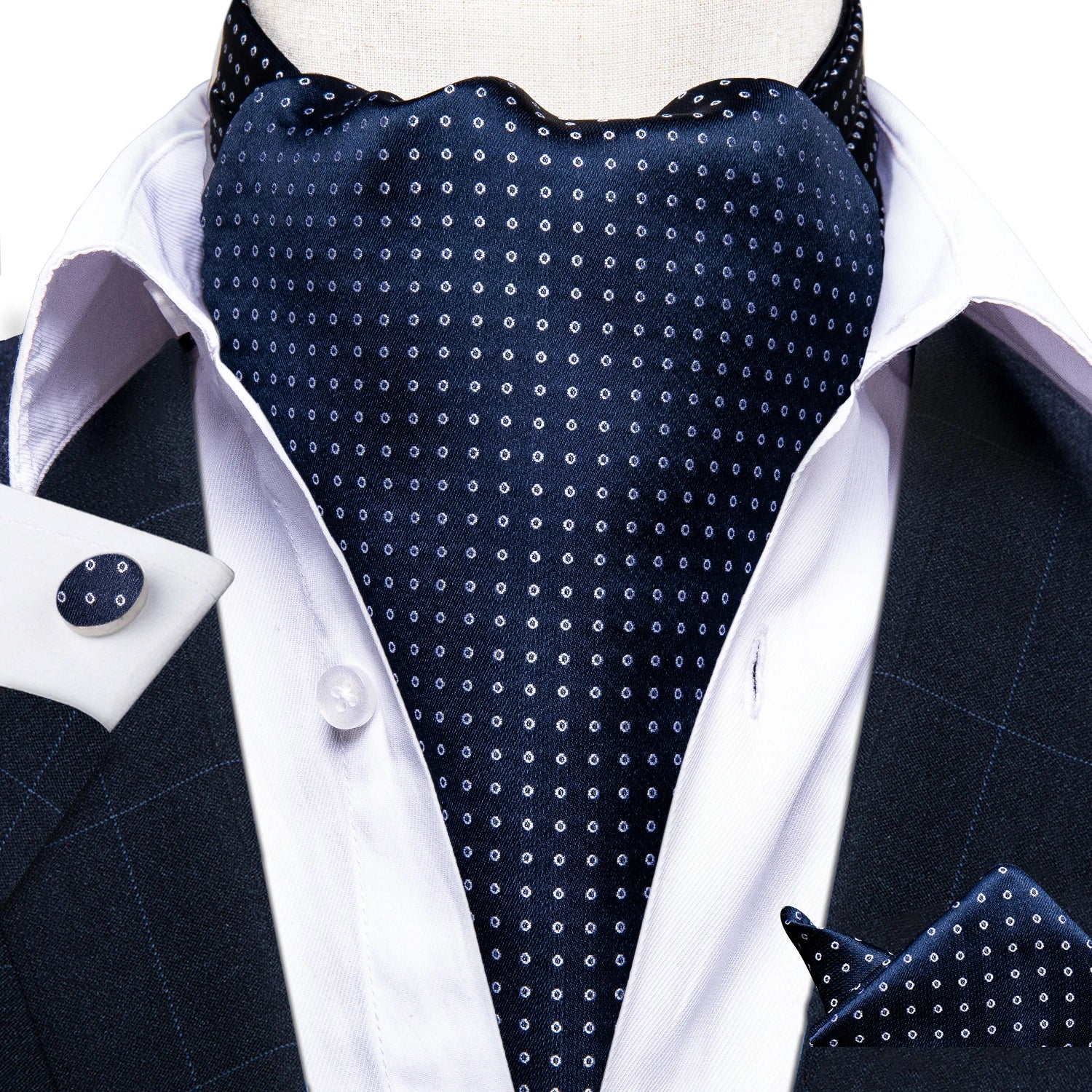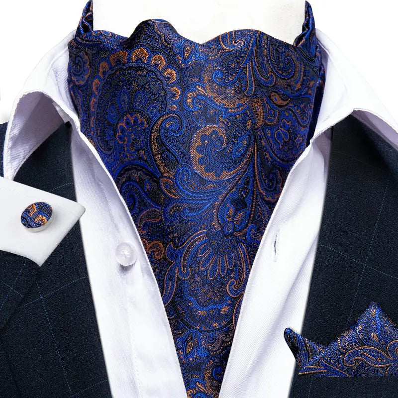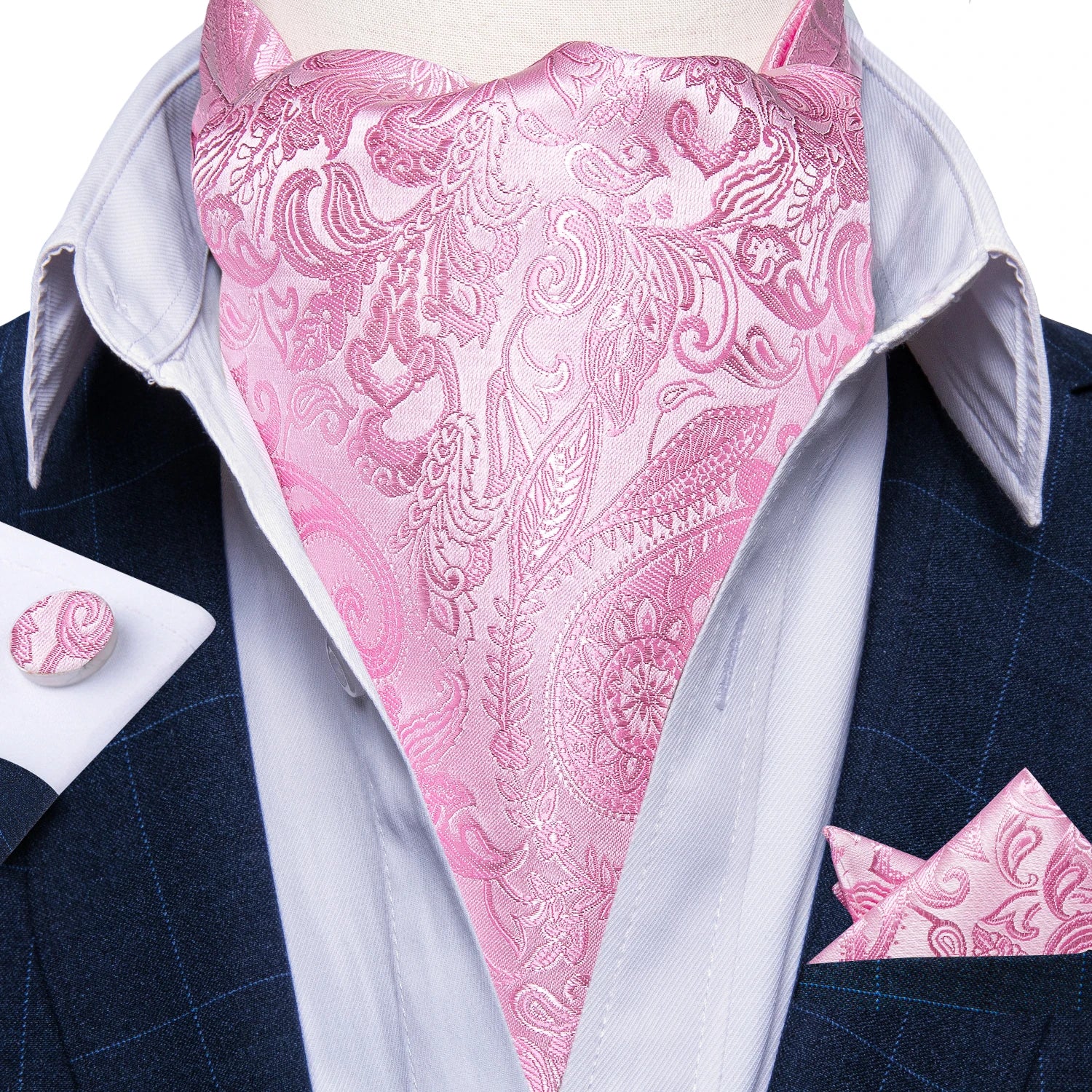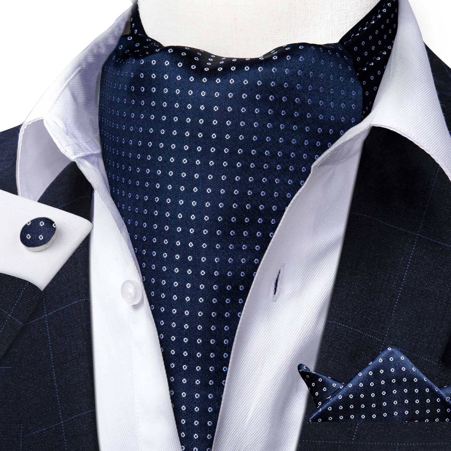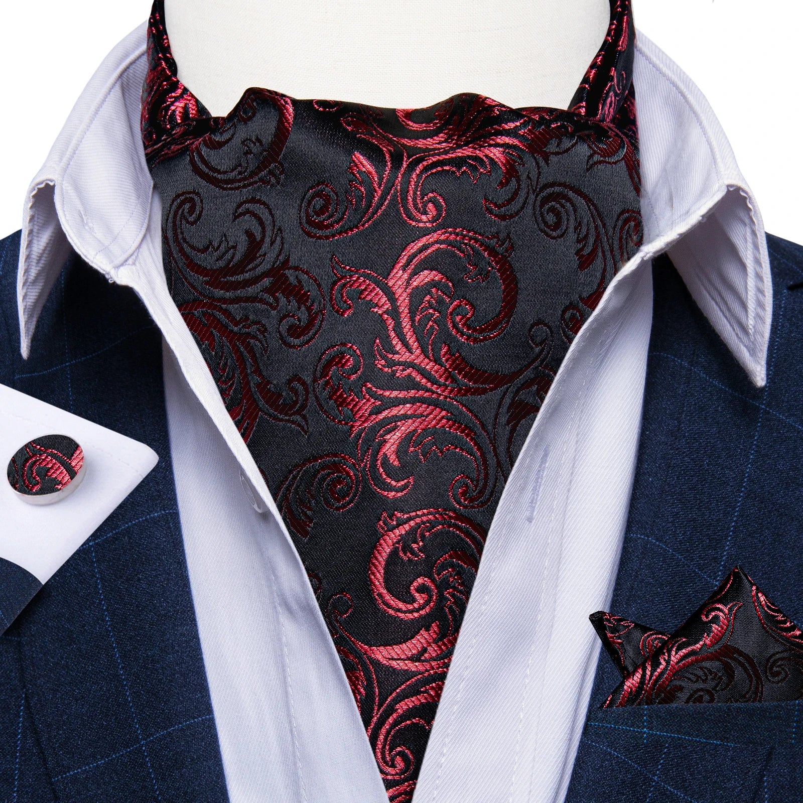 Silver Black Plaid Men's Ascot Tie Handkerchief Cufflinks Vintage Jacquard Floral Paisley British Gentleman Polyester Neck Tie