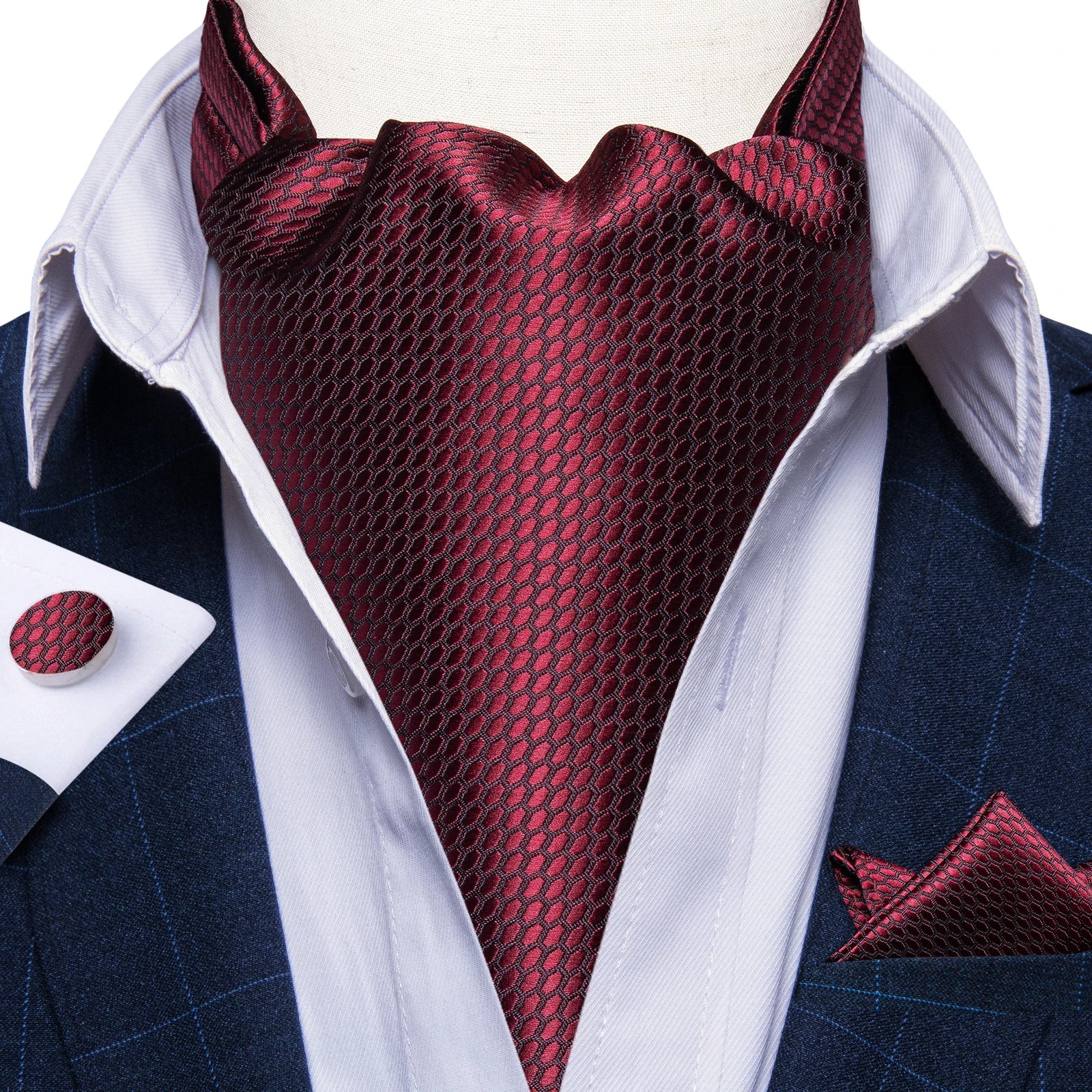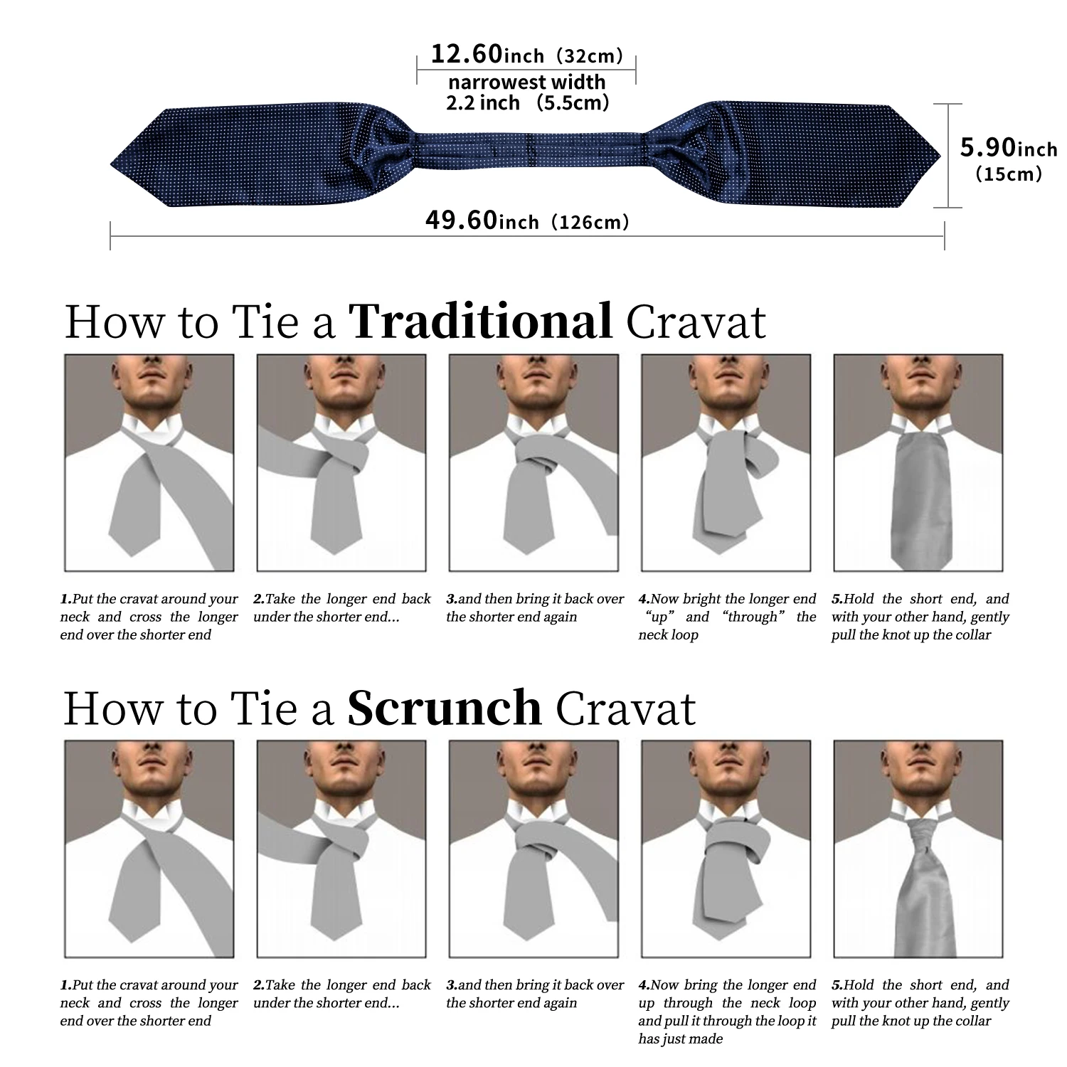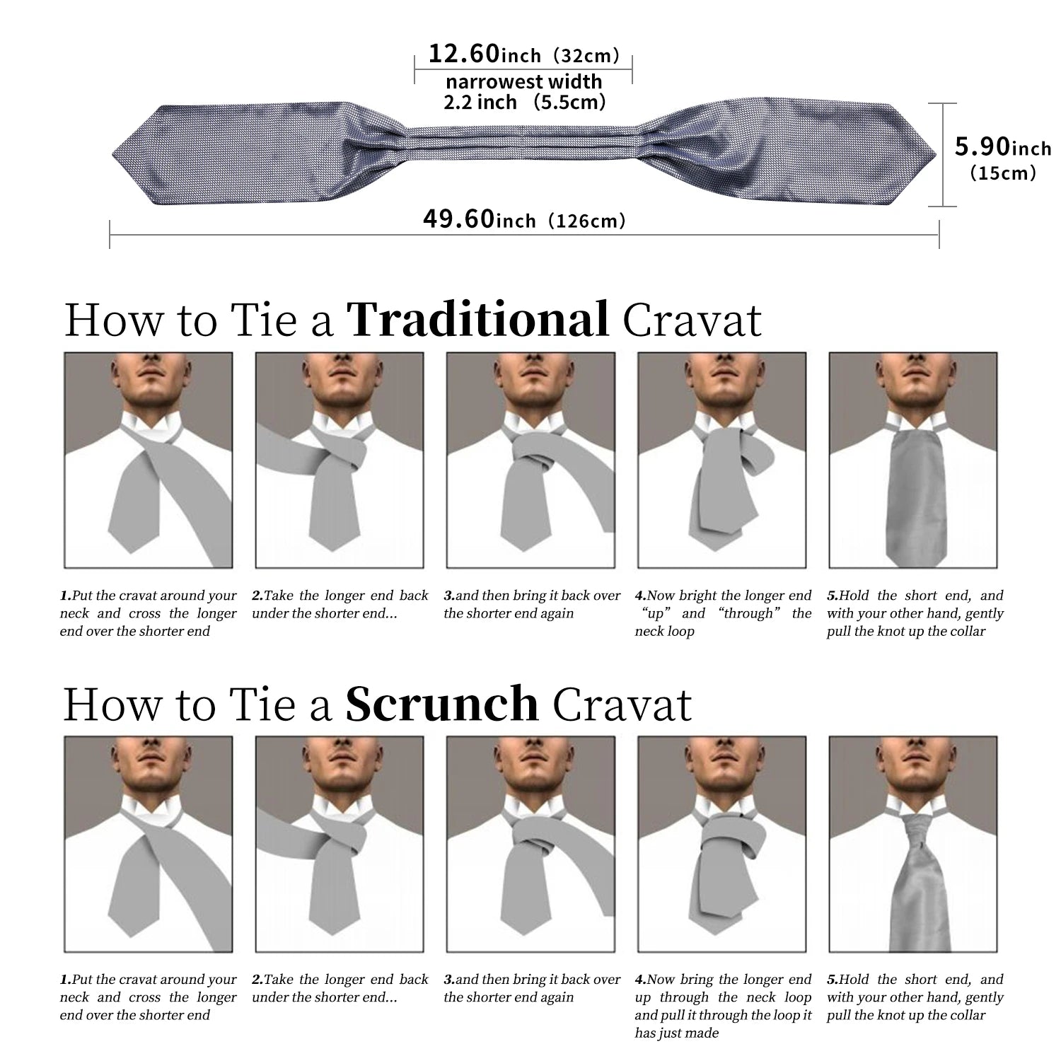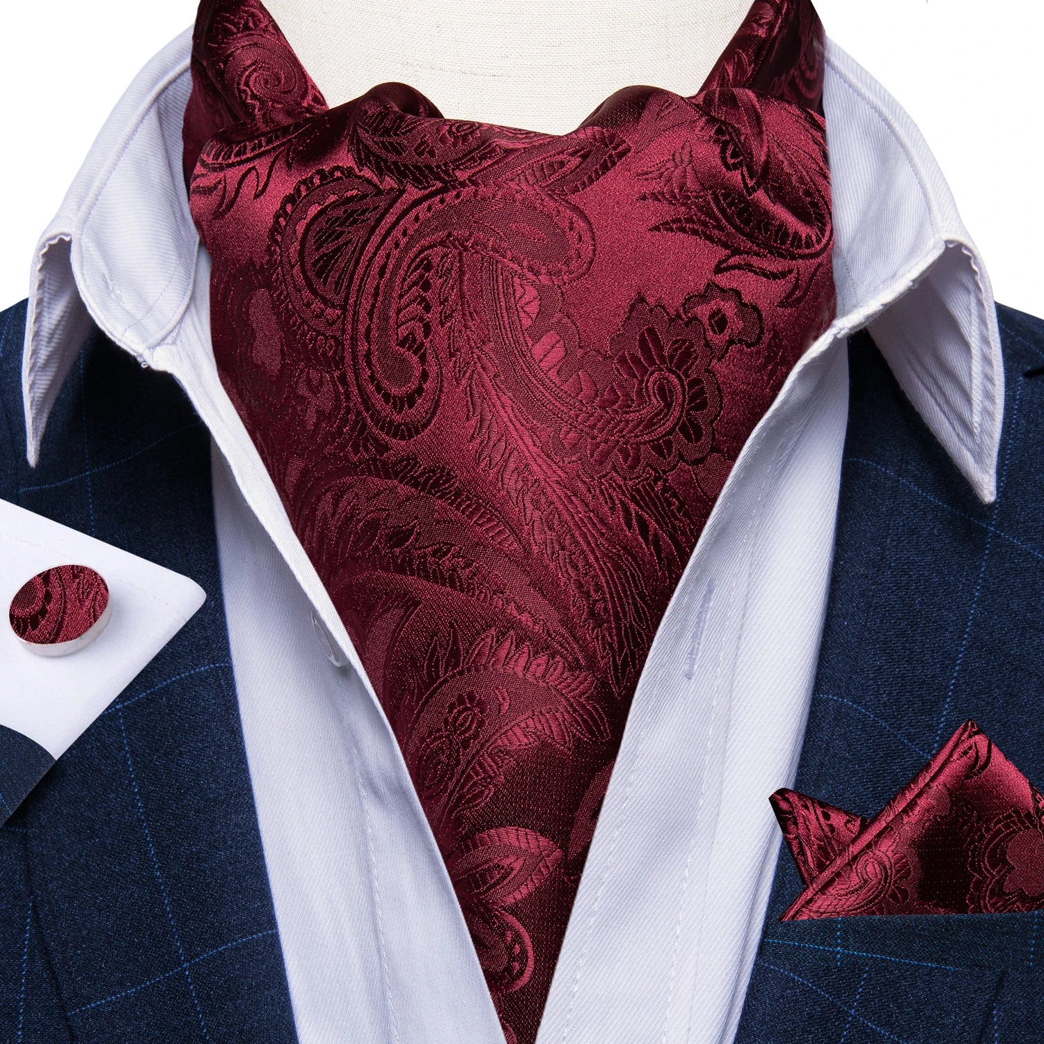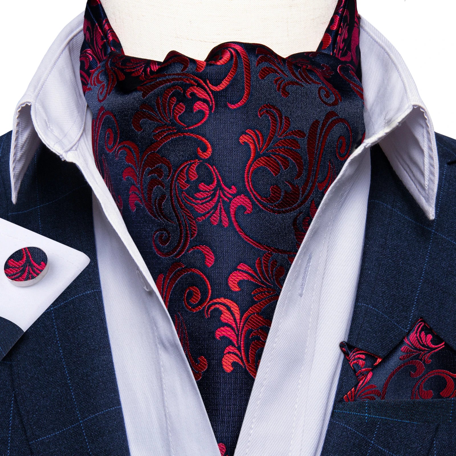 Silver Black Plaid Men's Ascot Tie Handkerchief Cufflinks Vintage Jacquard Floral Paisley British Gentleman Polyester Neck Tie