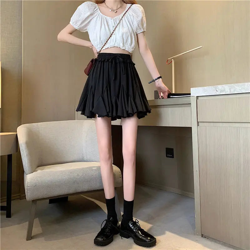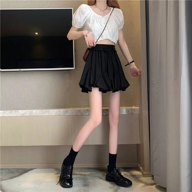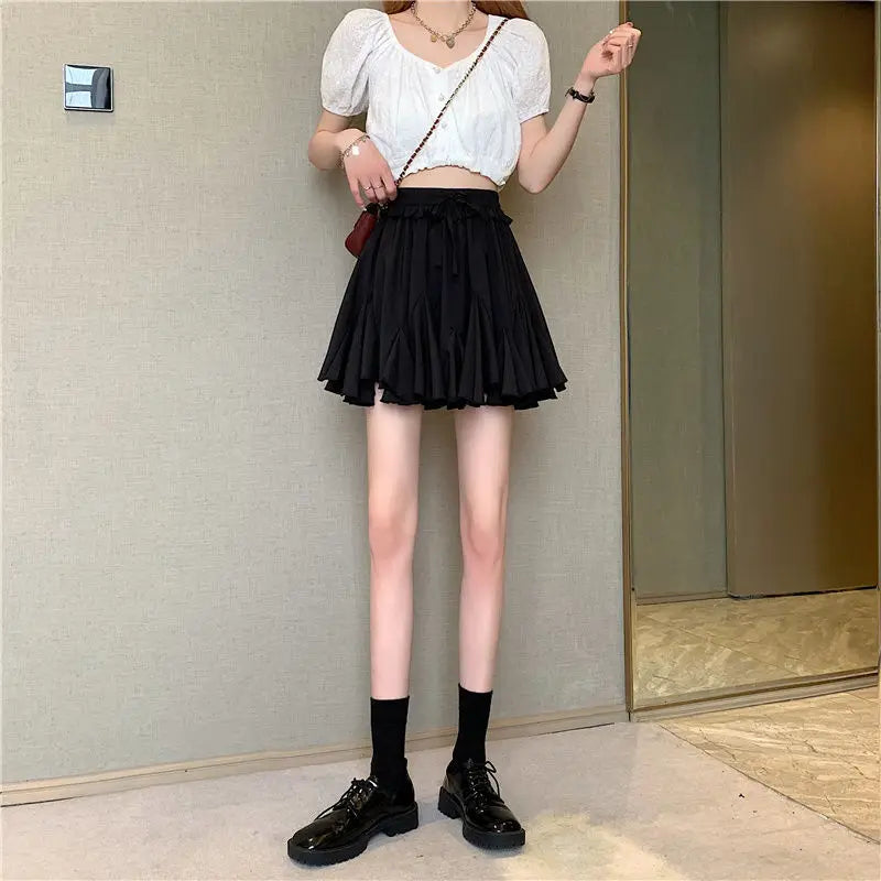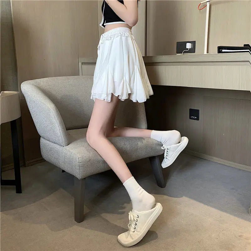 Skirts Women Pleated High Waist Fashion Solid Korean Style All-match Mini Summer Newest Simple Streetwear Holiday Female Leisure